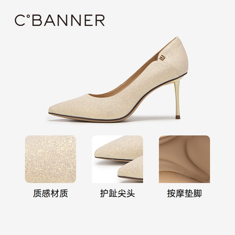 子D3S1DAQ5 真皮不累脚妈妈上班鞋 百丽粗高跟浅口单鞋 女2025新款