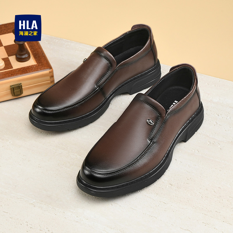 休闲皮鞋 新款 男士 软底一脚蹬真皮鞋 红蜻蜓男鞋 子男中年爸爸鞋 秋季