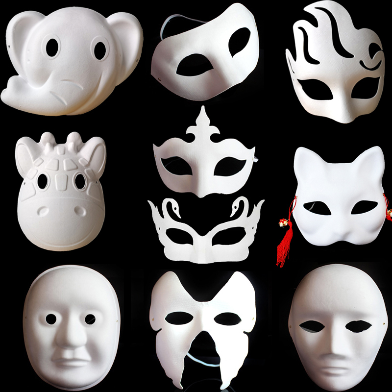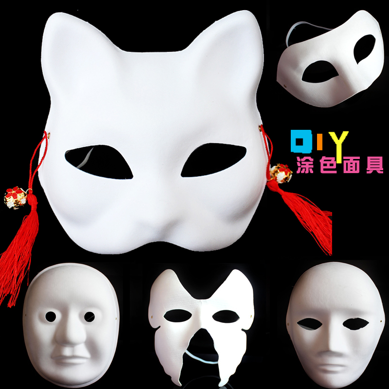 万圣节手绘儿童绘画京剧脸谱面具DIY空白纸浆涂色鬼面具南瓜狐狸