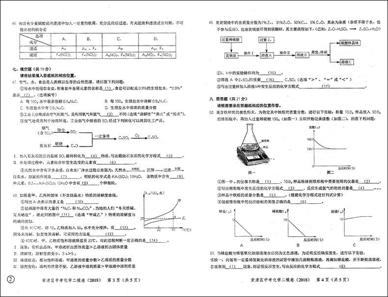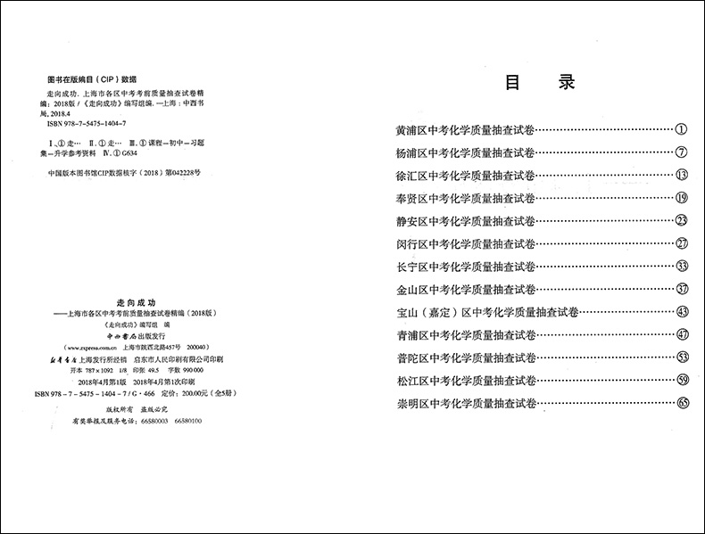 上海市九年级初三初中各区县中考考前质量抽查试卷精编中考冲刺模拟试题试卷仅试卷 上海中考二模卷化学 现货2018年版 走向成功