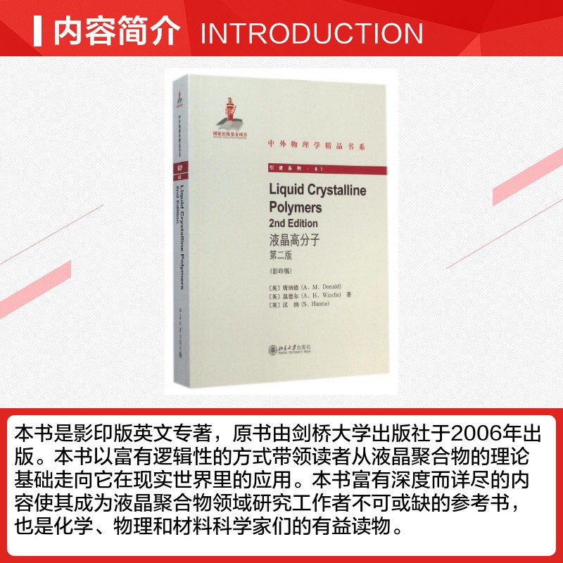 英文影印版 第2版 2nd 液晶高分子 英 汉纳 Crystalline 温德尔 Liquid 著作 Polymers 唐纳德 edition