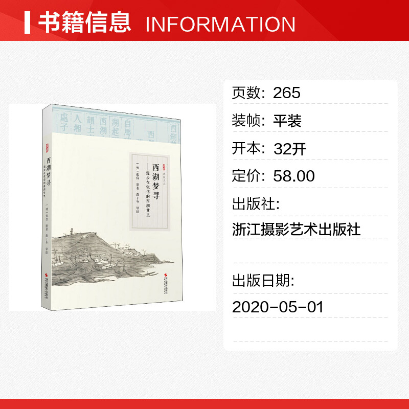 张岱 著 浙江摄影艺术出版 西湖梦里 社 图书籍 明 新华书店正版 西湖梦寻——漫步在张岱 中国古代随笔文学