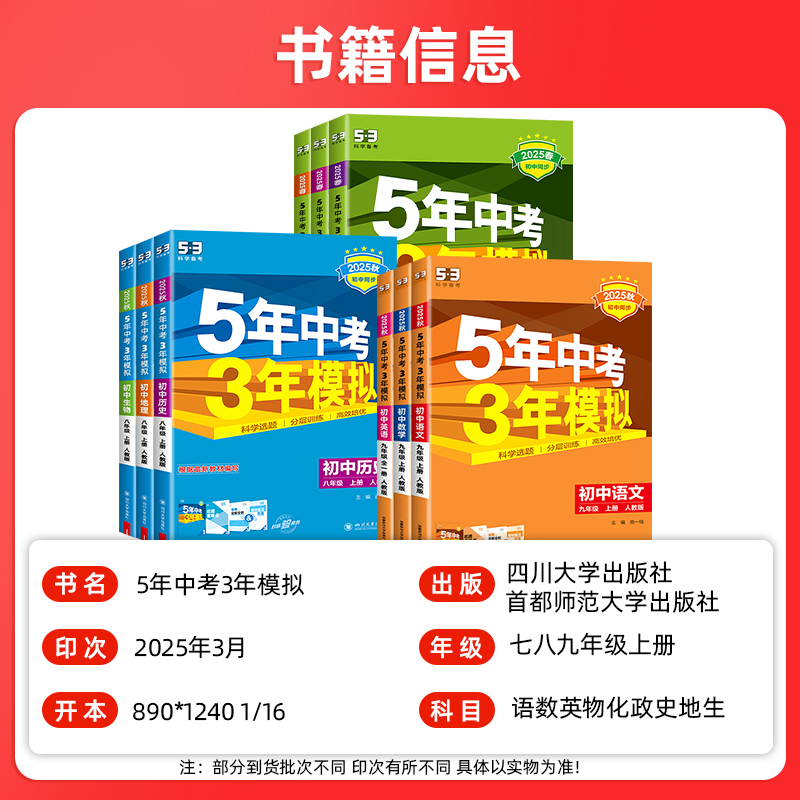 2025五年中考三年模拟789同步练习册七八九年级上下册语文数学英语物理化学政治历史地理生物人教北师湘教沪粤版 初一二三53必刷题