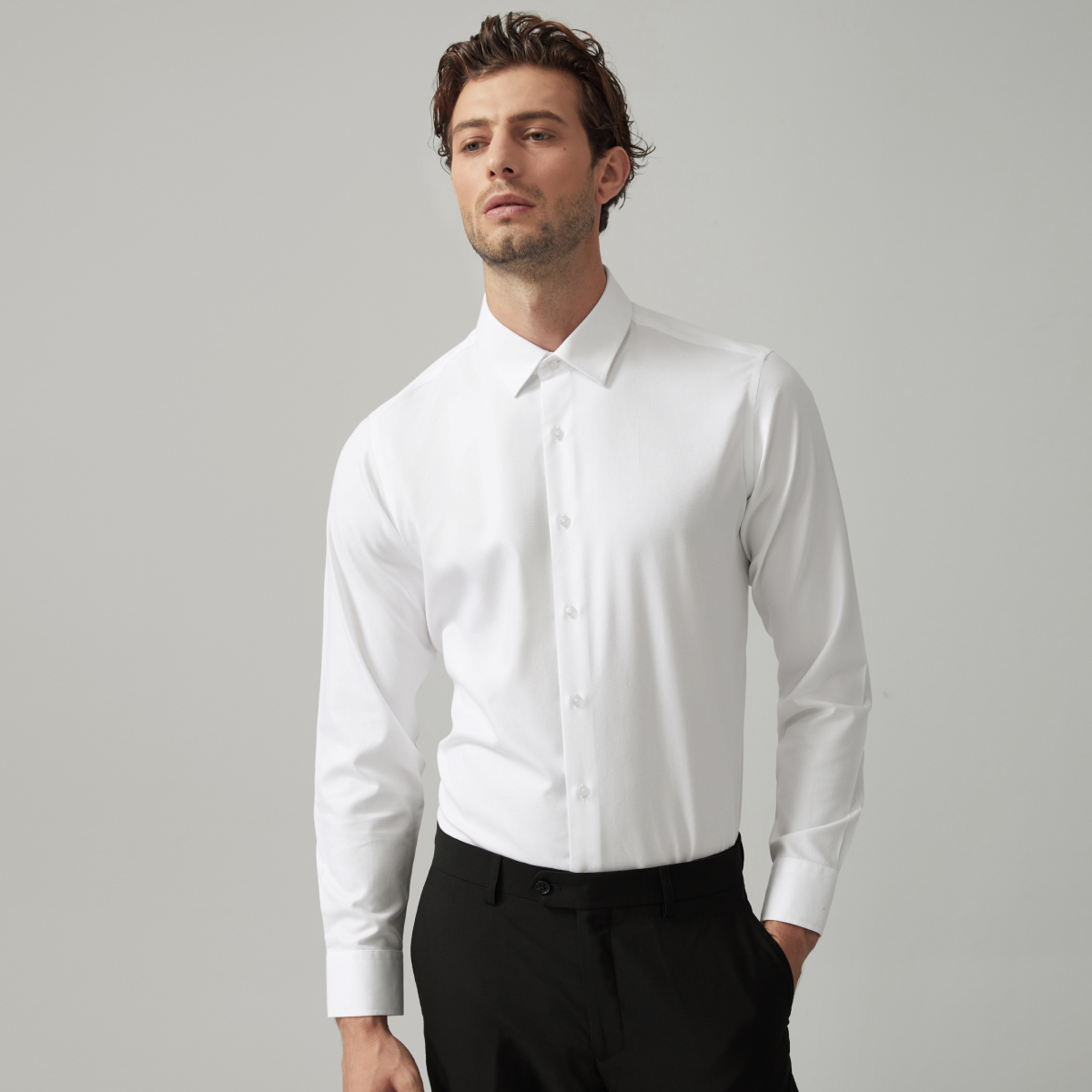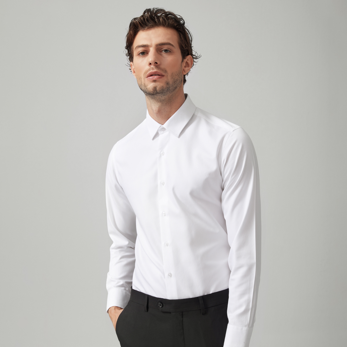 秋季 男士 新款 商务正装 柒牌长袖 含莫代尔衬衣白色订婚结婚男款 衬衫