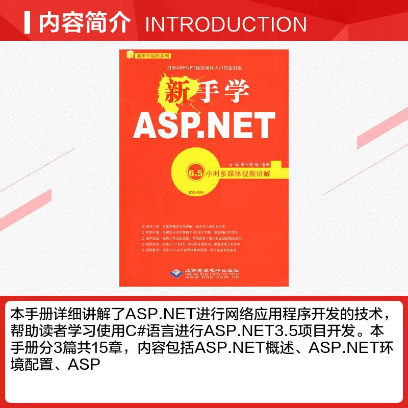 专业科技 图书籍 马军 著作 程序设计 等编著 1DVD 李玉林 新华书店正版 新手学ASP.NET 新 6.5小时多媒体视频讲解