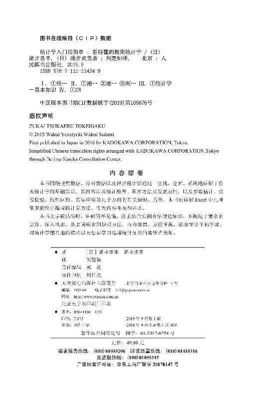 日 涌井良幸 涌井贞美 统计学入门很简单 参数应用书 统计学 Excel常见统计指标计算方法书 统计原理基本方法参考书 看得懂