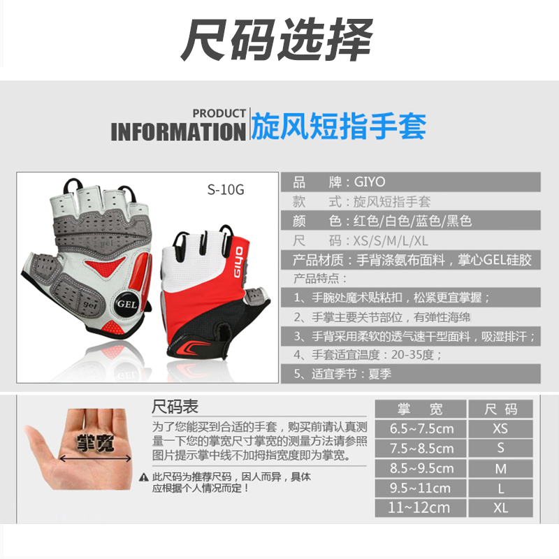 GIYO山地自行车半指手套液态硅胶减震短指单车骑行男女儿童手套