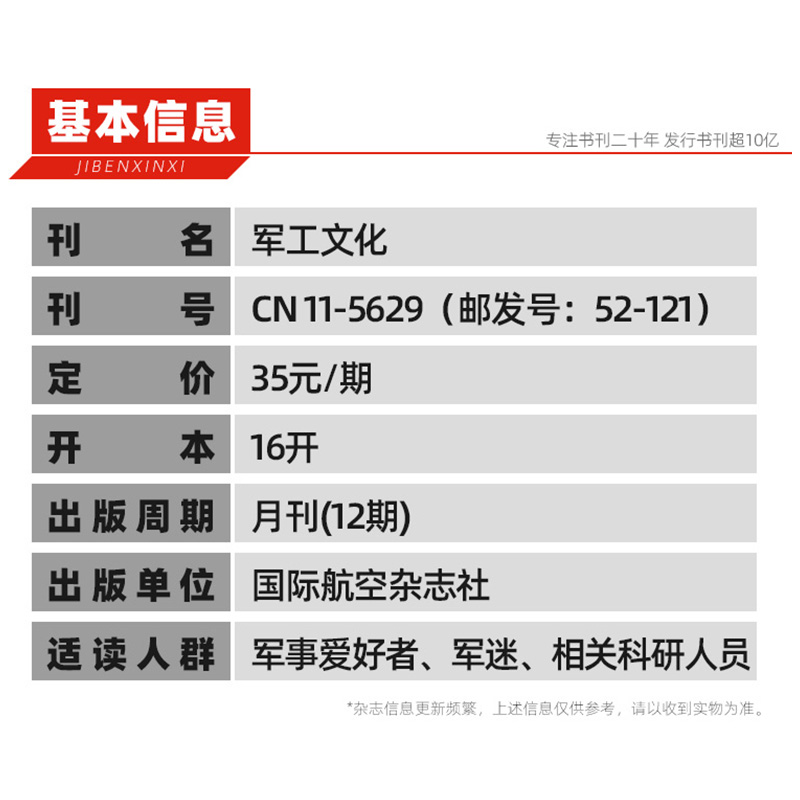 正版 全年12期订阅 军工文化杂志 出售 2026年订阅