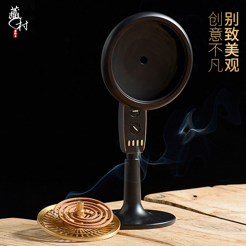 藏村 盘香炉创意风扇全铜香沉香檀香熏香炉盘香家用室内熏香摆件