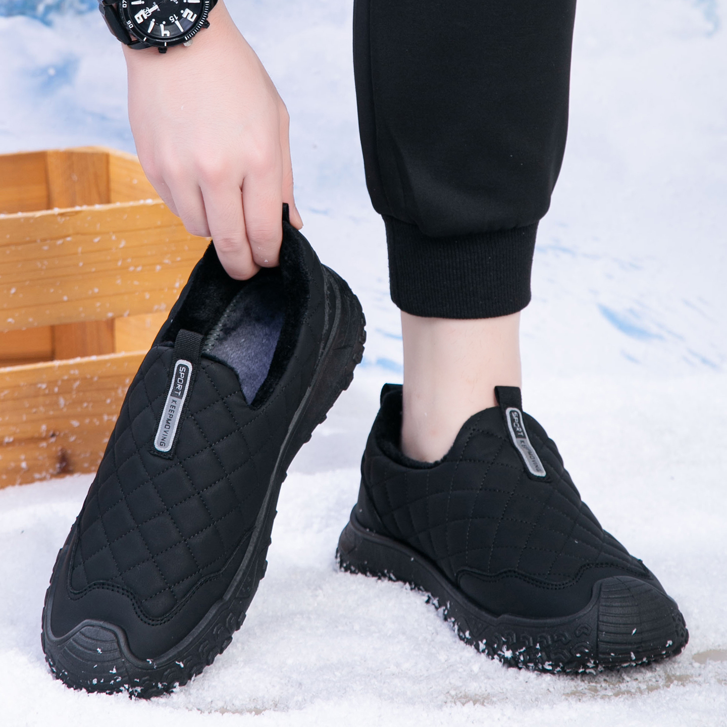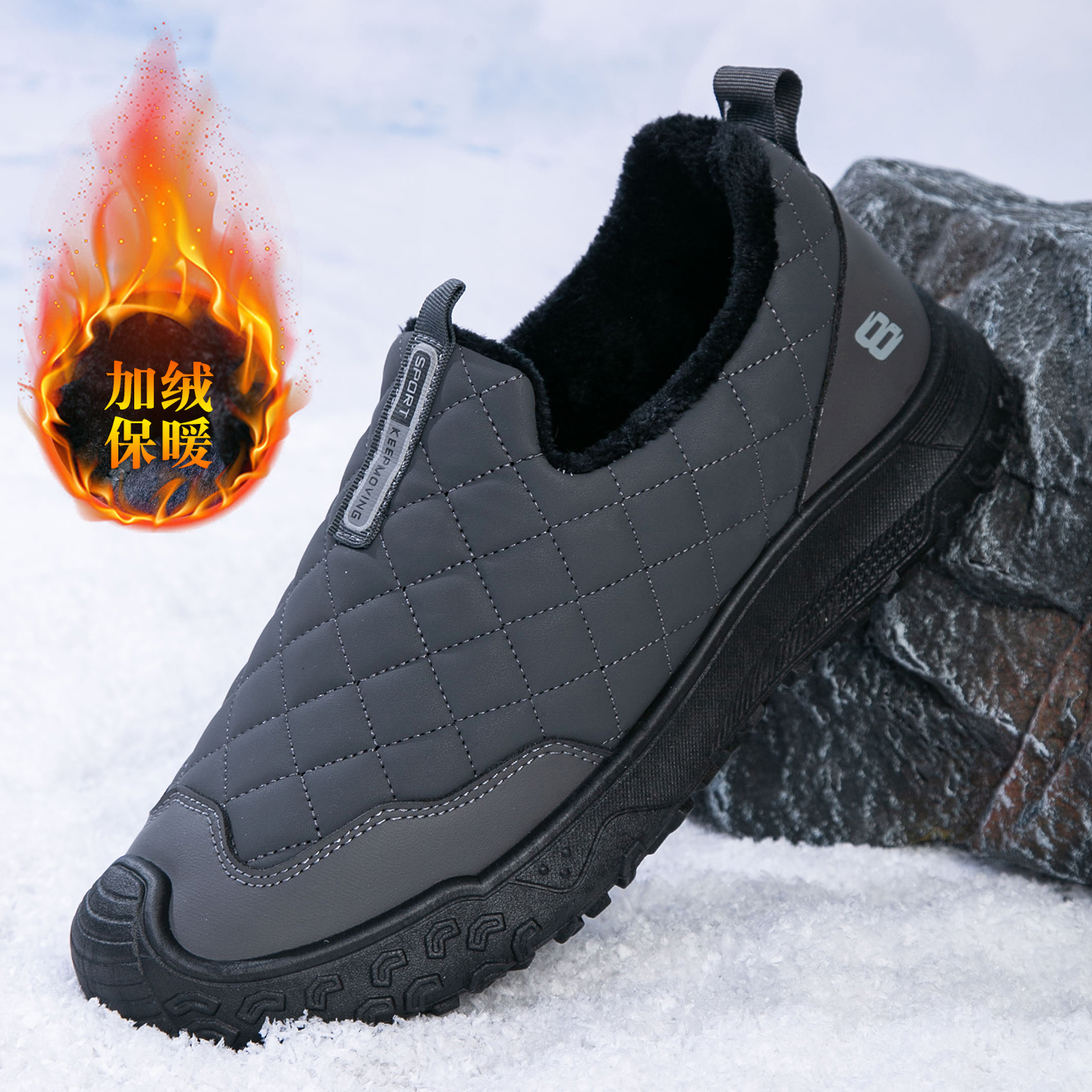 男士 冬季 加绒保暖加厚雪地靴休闲北京 男防滑老年人棉鞋 老人棉布鞋