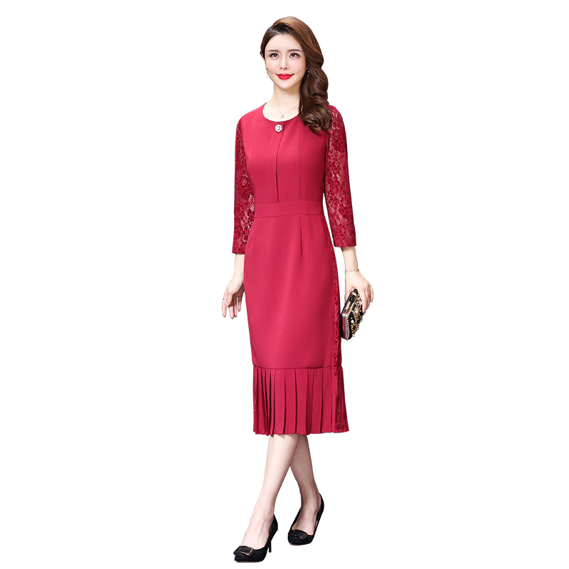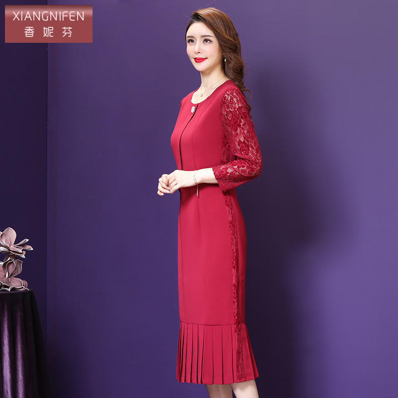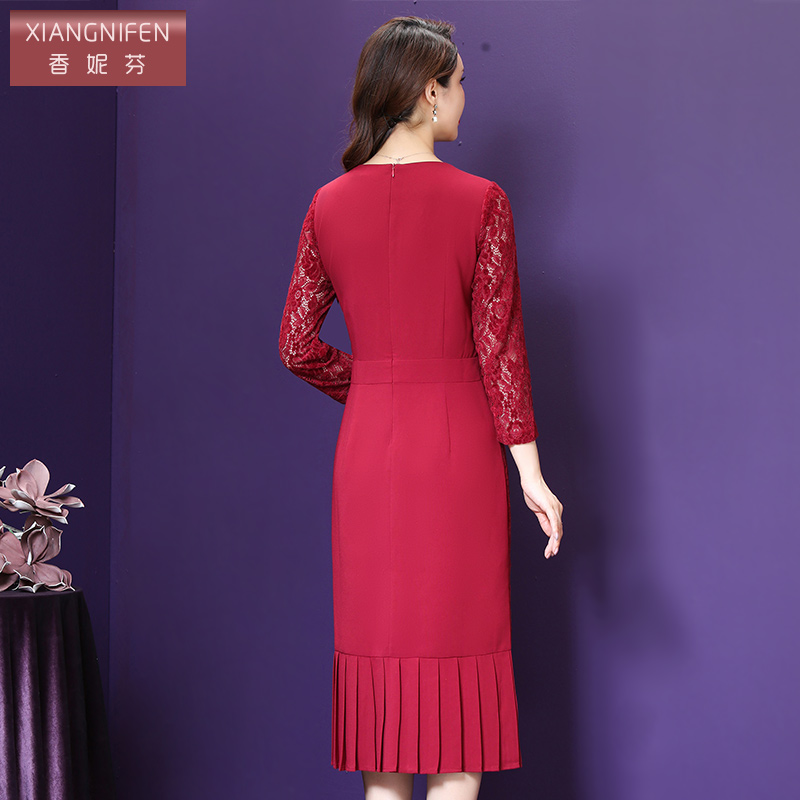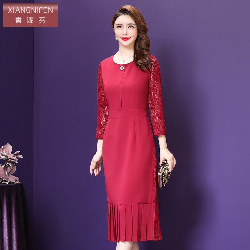 优雅a字裙红色裙子 新款 香妮芬高贵修身 名媛气质连衣裙女2025秋季