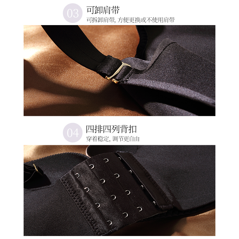 ubras妥妥杯加固防滑无肩带内衣美背大胸显小抹胸聚拢隐形文胸罩