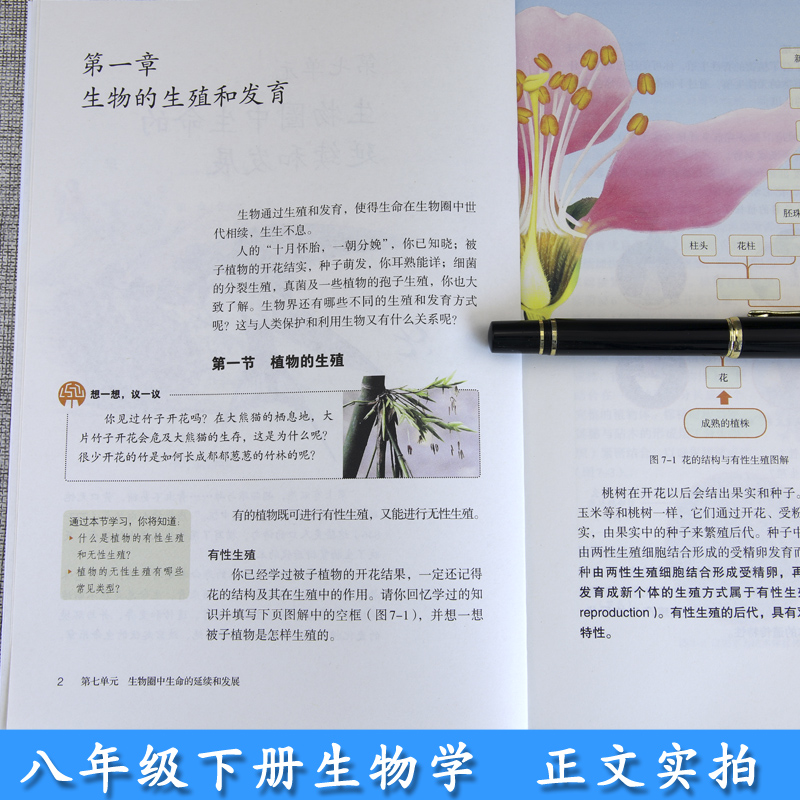 八年级下册生物书人教版 生物书八年级下册八年级生物下册初中课本初二下册教材义务教育教科书生物8年级生物书下册