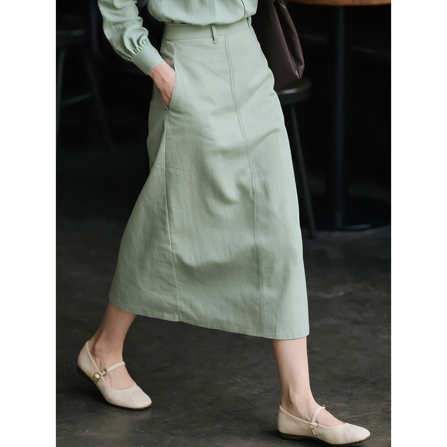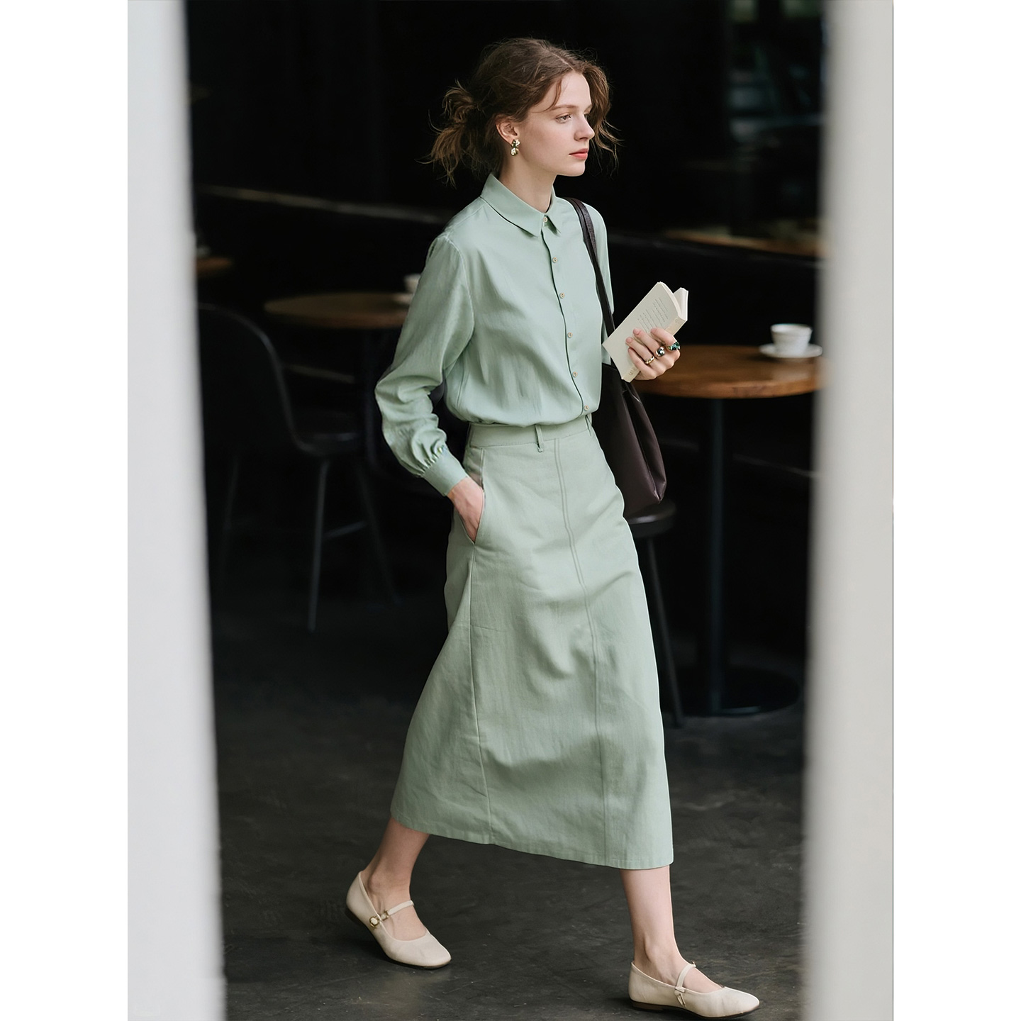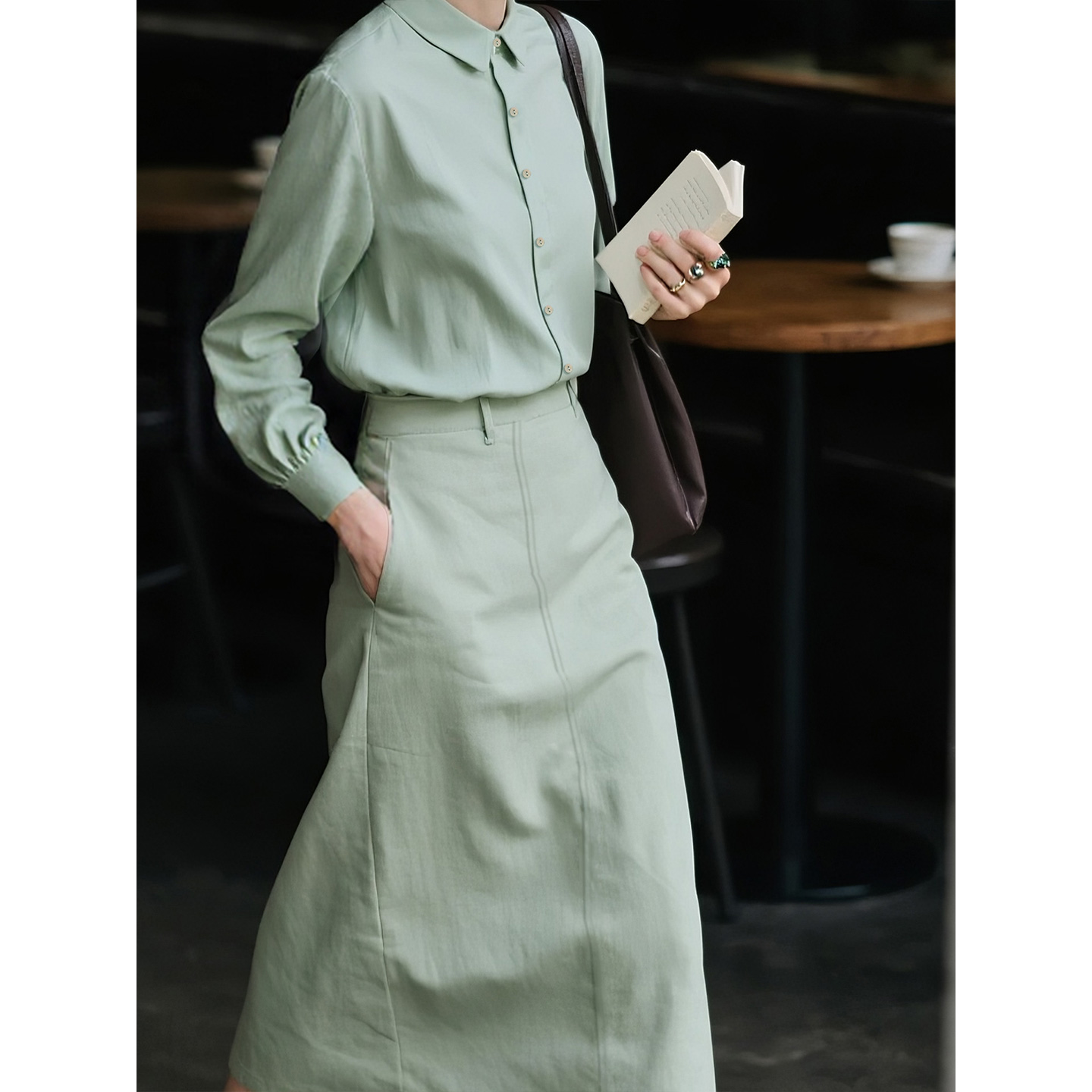 半身裙两件套出席重要场合 绿色天丝套装 衬衫 2025新款 裙子 女秋季