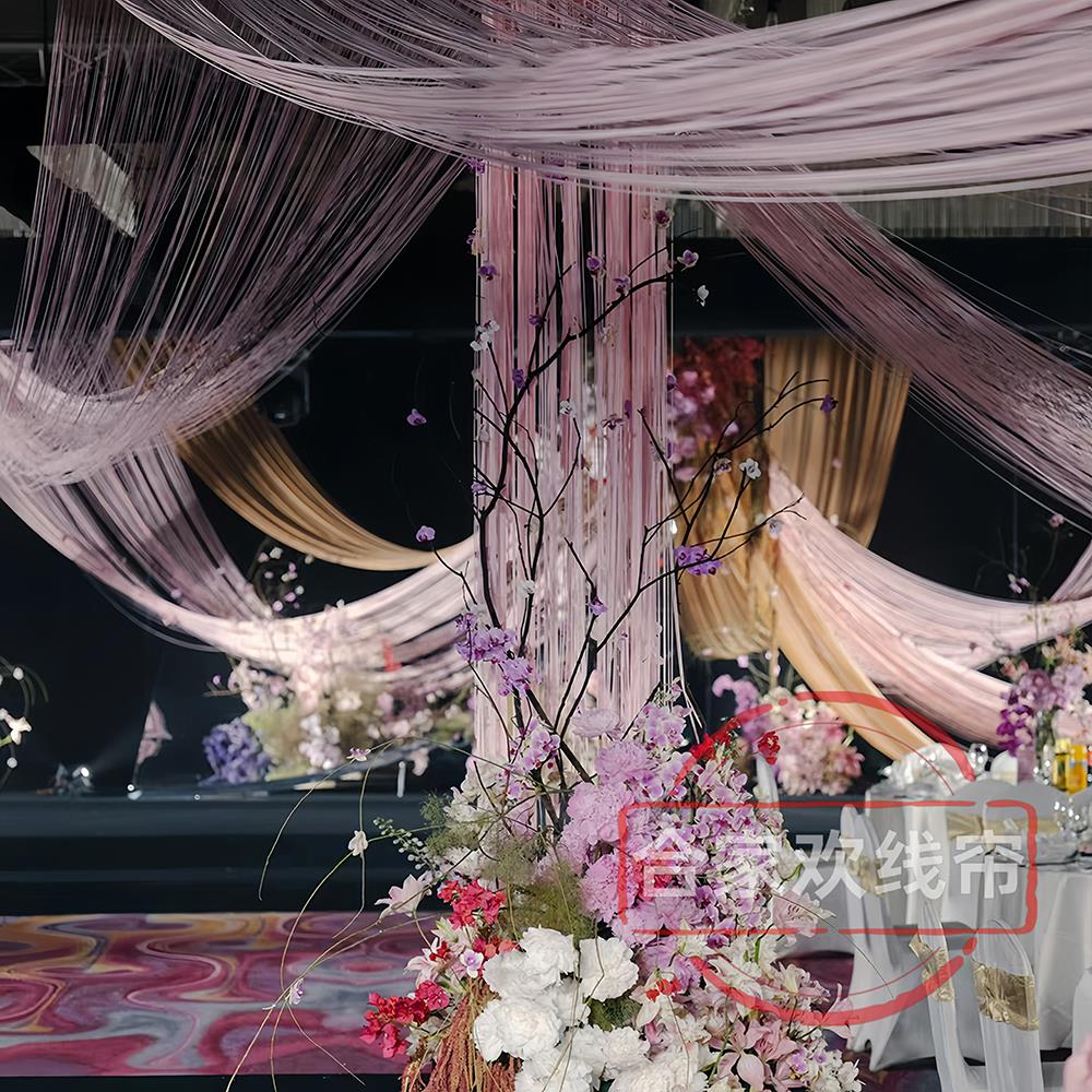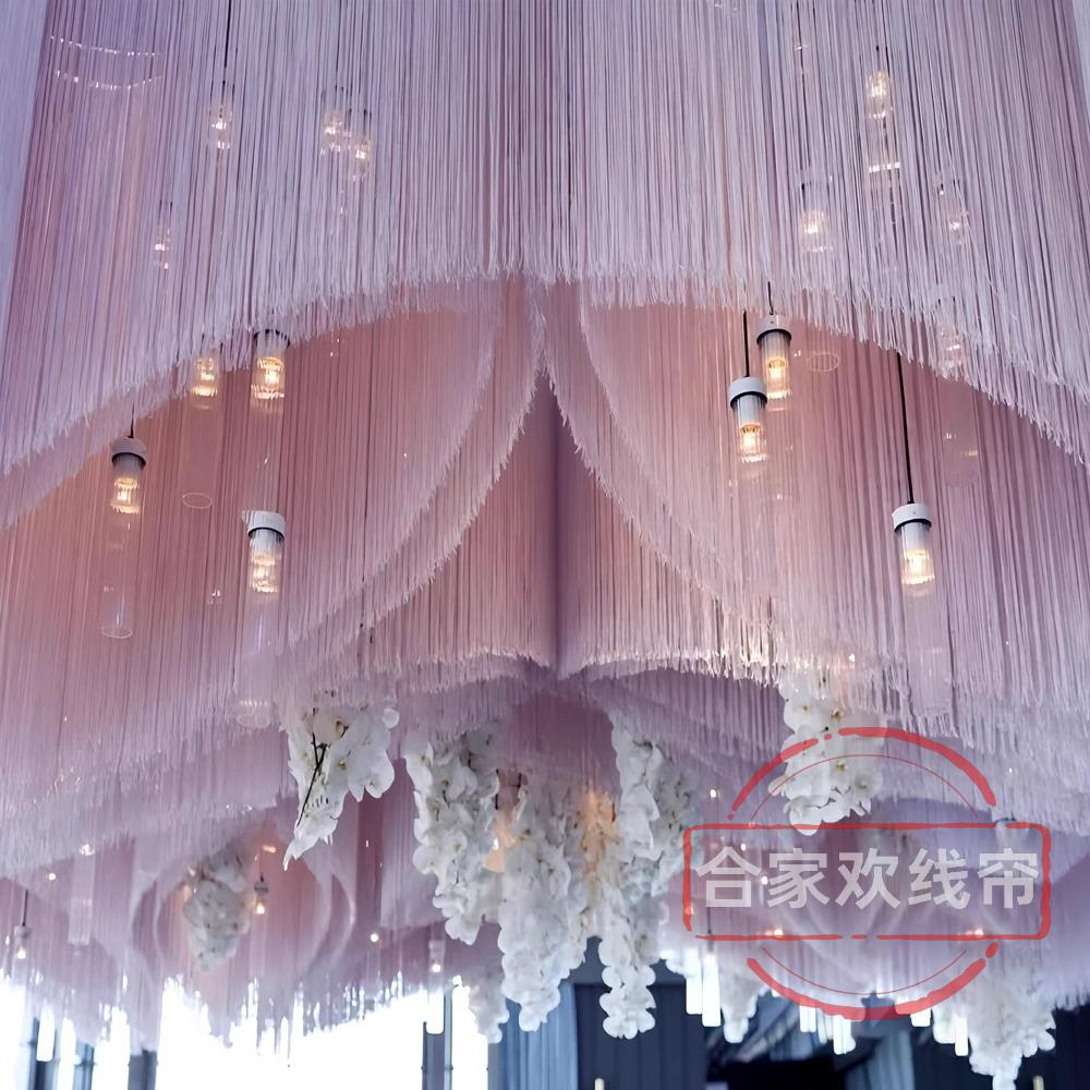 垂感婚礼舞台流苏隔断线帘 加密婚庆直线帘韩式 定制尺寸 粉色