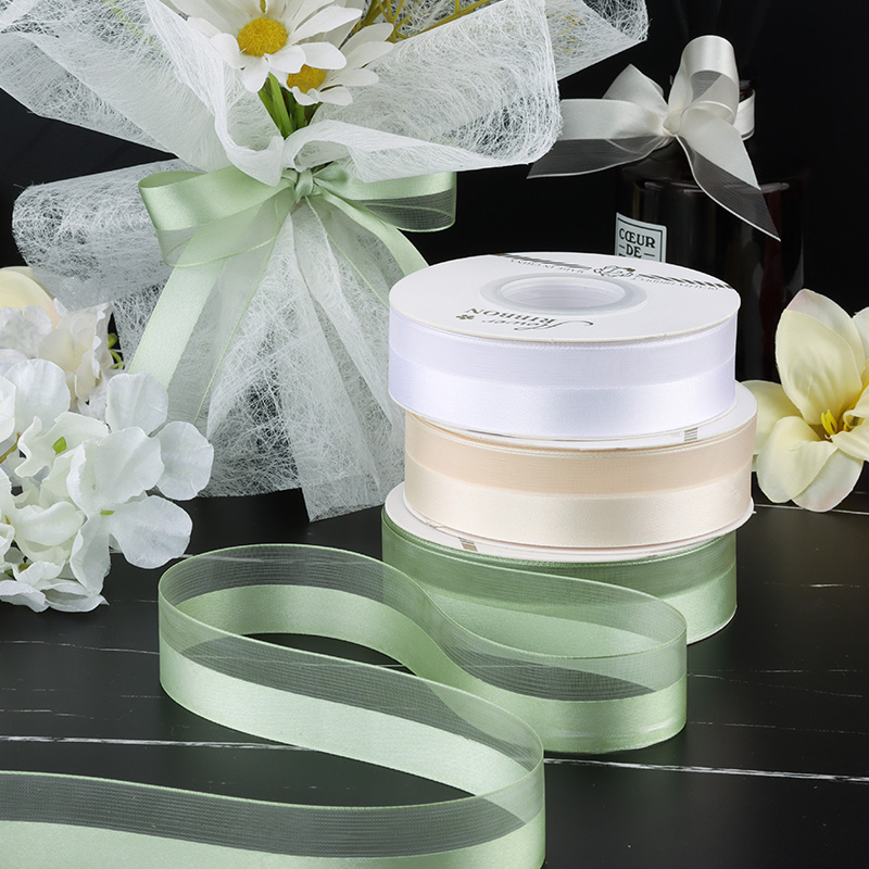 2.5cm半缎半纱丝带纯色鲜花蛋糕礼品包装 饰材料 纱带缎带蝴蝶结装