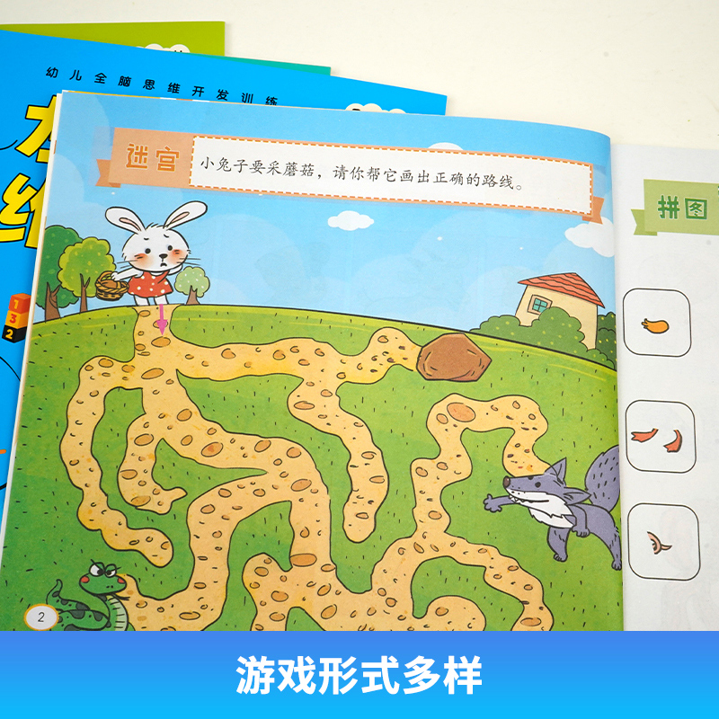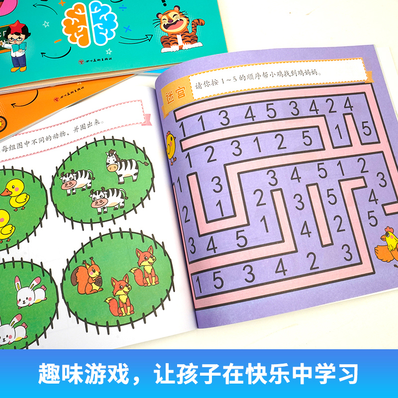 左右脑思维大闯关儿童专注力训练书全套4册 视觉听觉注意力挑战训练幼儿左右脑全脑开发思维训练书籍三到四宝宝2到6岁以上早教书