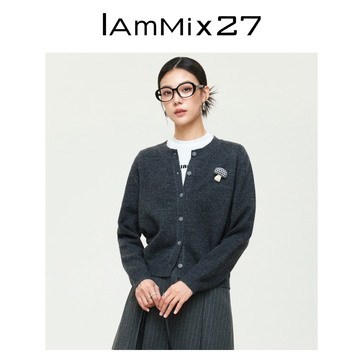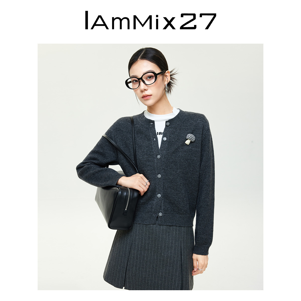 外套 显瘦软糯绵羊毛混纺毛针织衫 IAmMIX27秋冬圆领毛衣开衫 女短款
