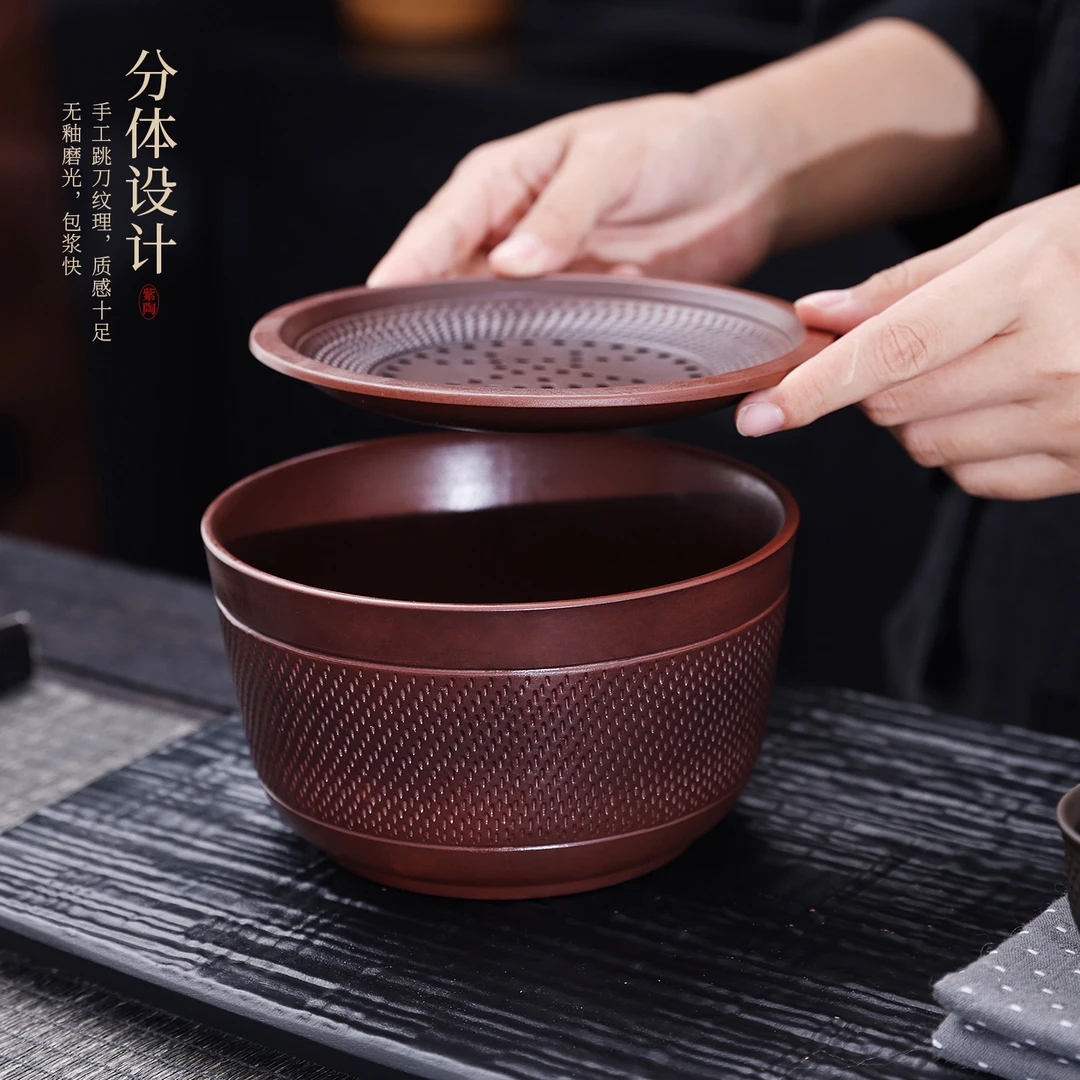 云南紫陶茶渣缸渣桶废水缸茶道茶台建水自带过滤简易茶具配件水盂