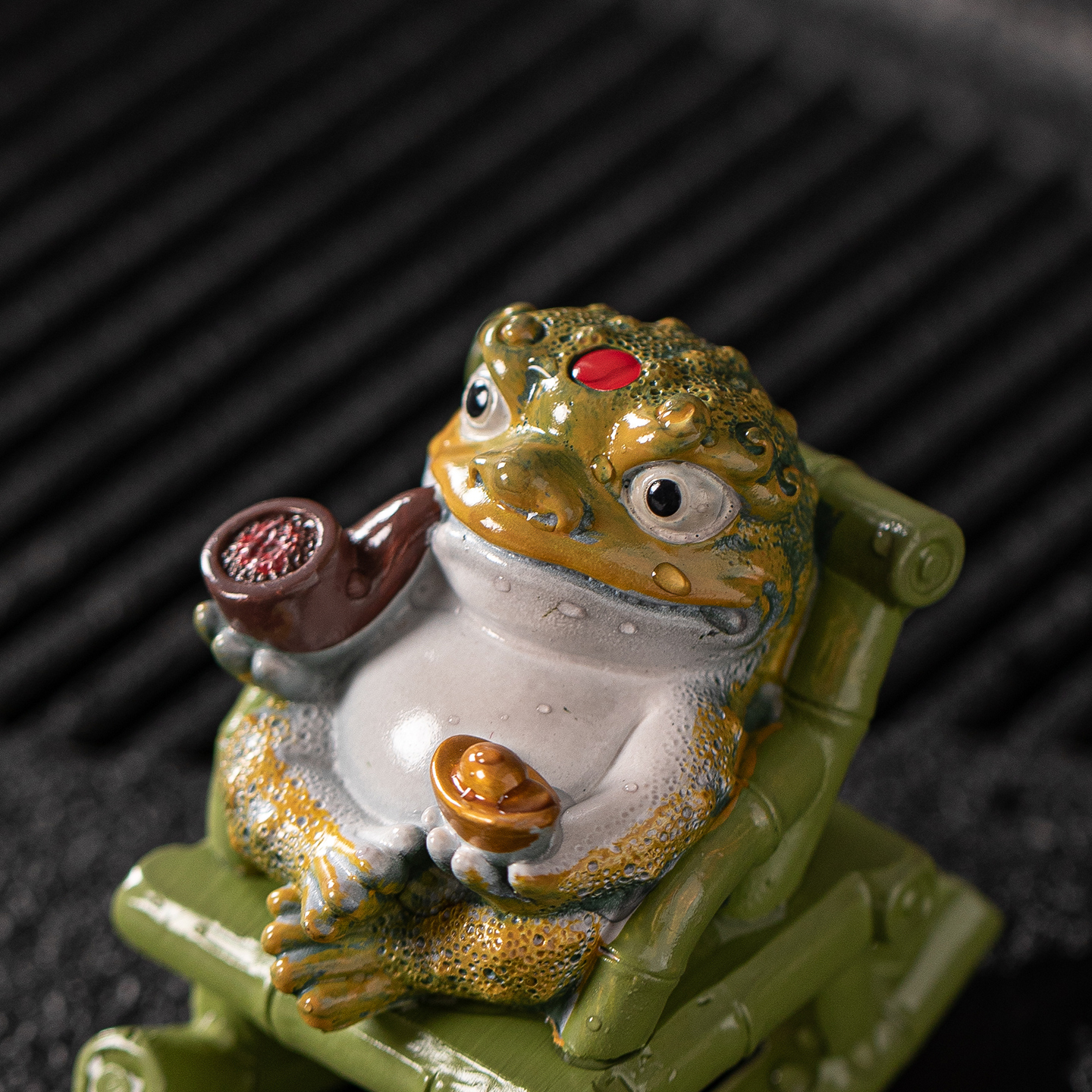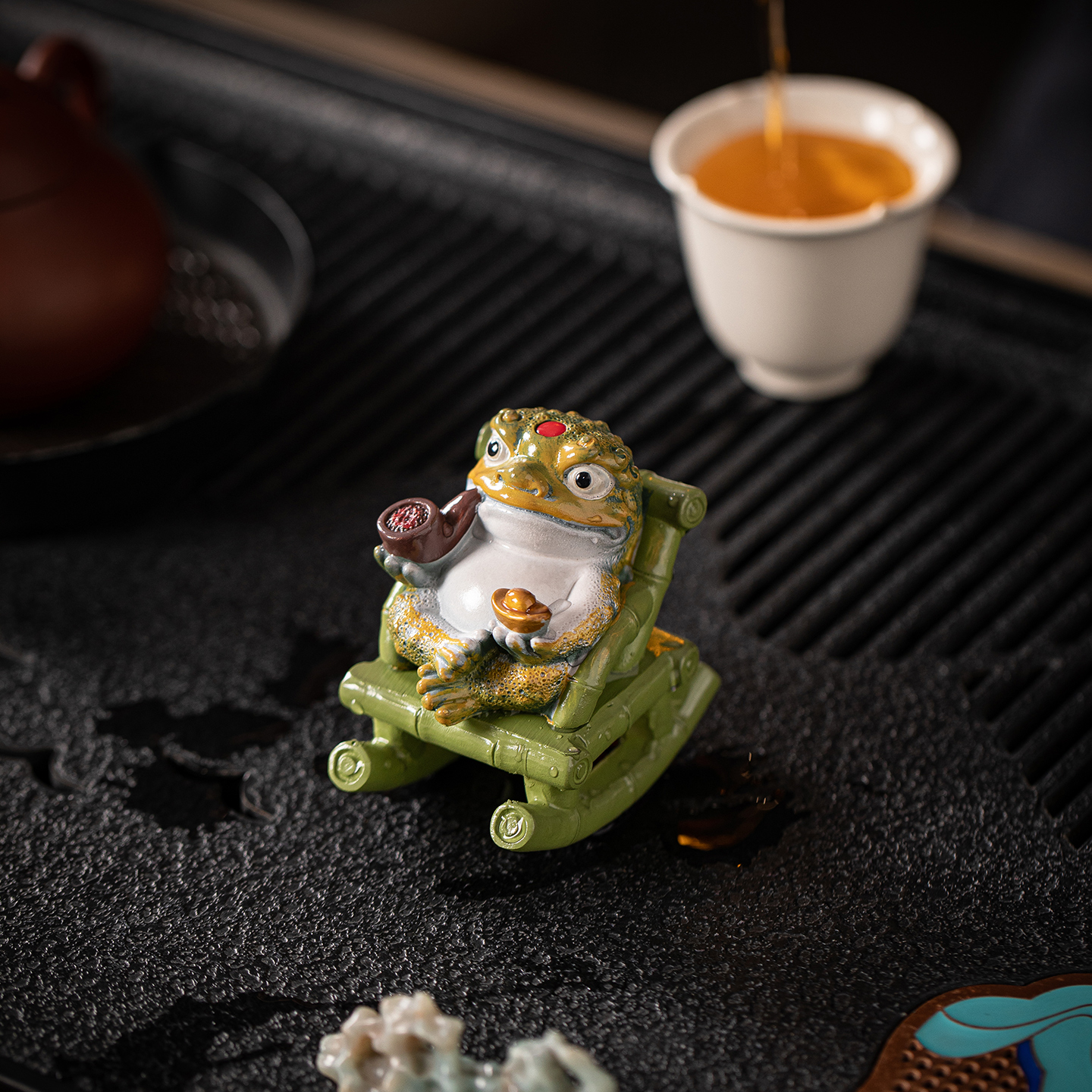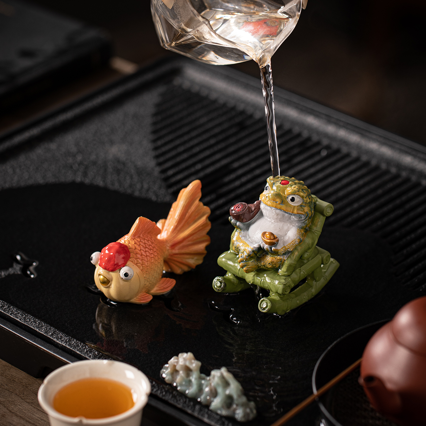 创意变色摇摇椅金蟾茶宠茶玩摆件中式 饰品 鸿运当头金鱼茶具配件装