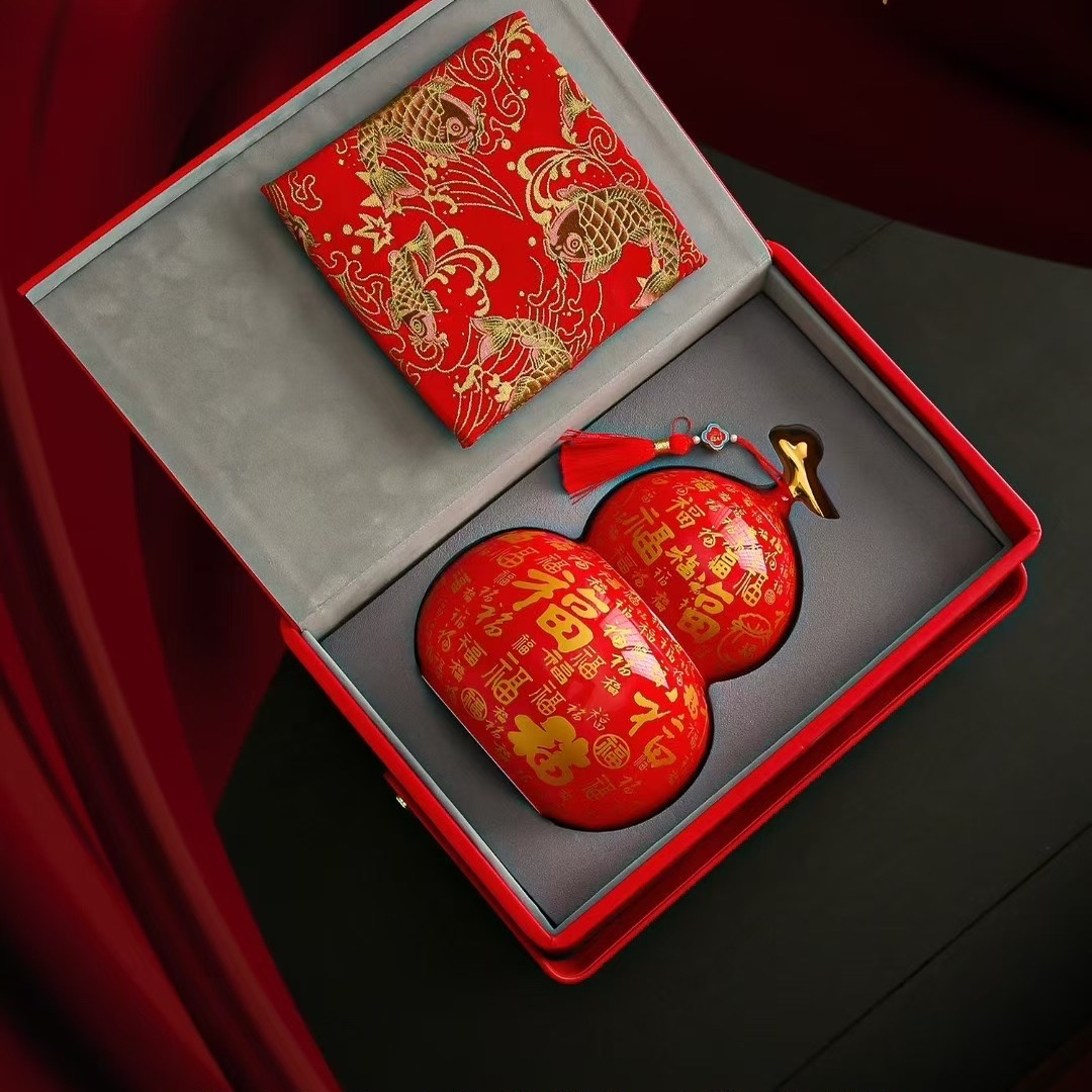 己造 葫芦茶叶罐陶瓷密封罐分层存储物罐存储茶罐家用送礼摆件