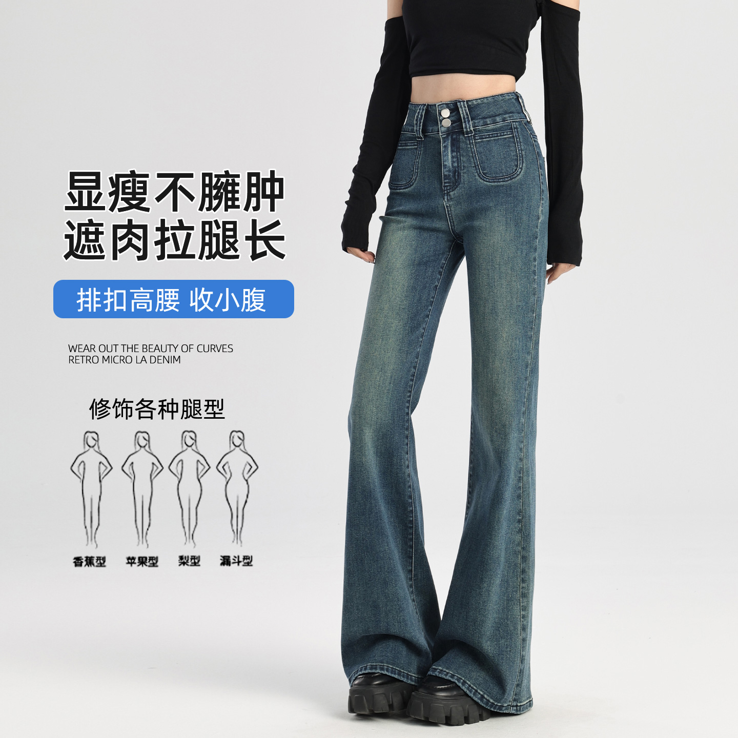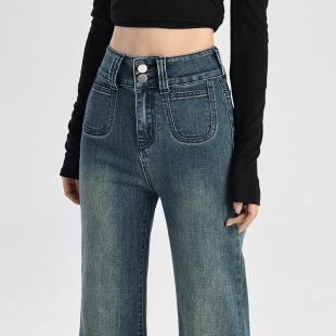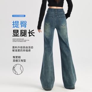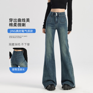 高腰显瘦高级感喇叭裤 小个子做旧修身 复古蓝女春秋新款 微喇牛仔裤