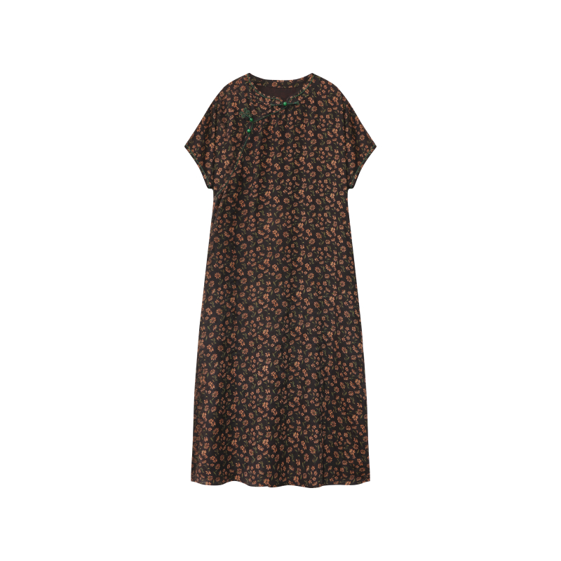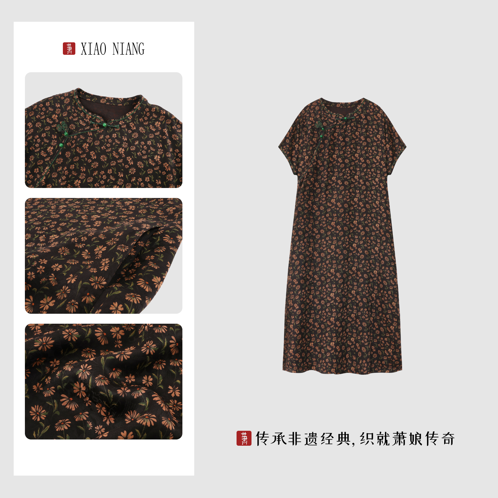 新中式 红云纱桑蚕丝连衣裙夏季 国风气质长裙5426 向阳花开 萧娘
