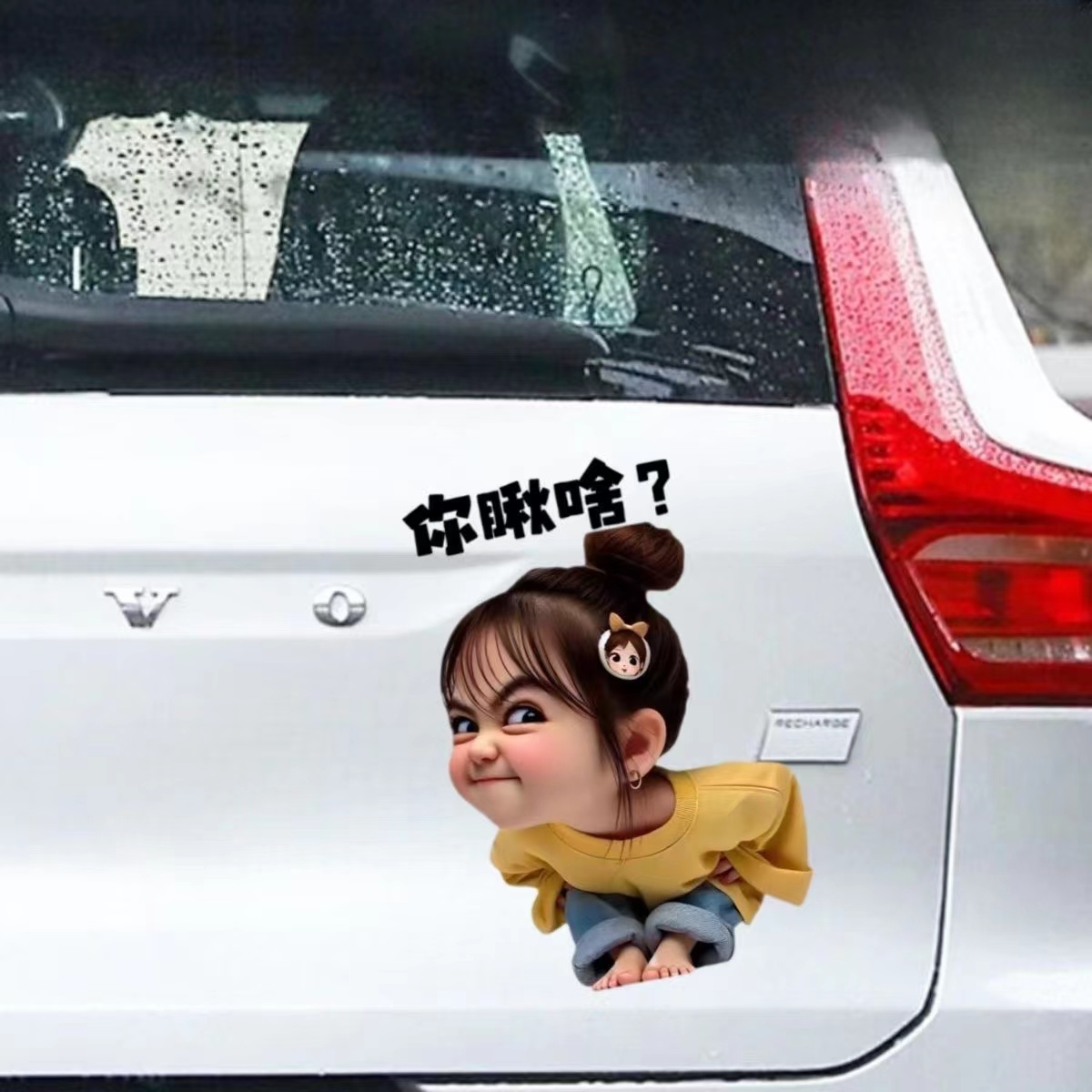 表情包小女孩车贴你瞅啥装 饰车贴纸摩托电动汽车身划痕遮挡防水