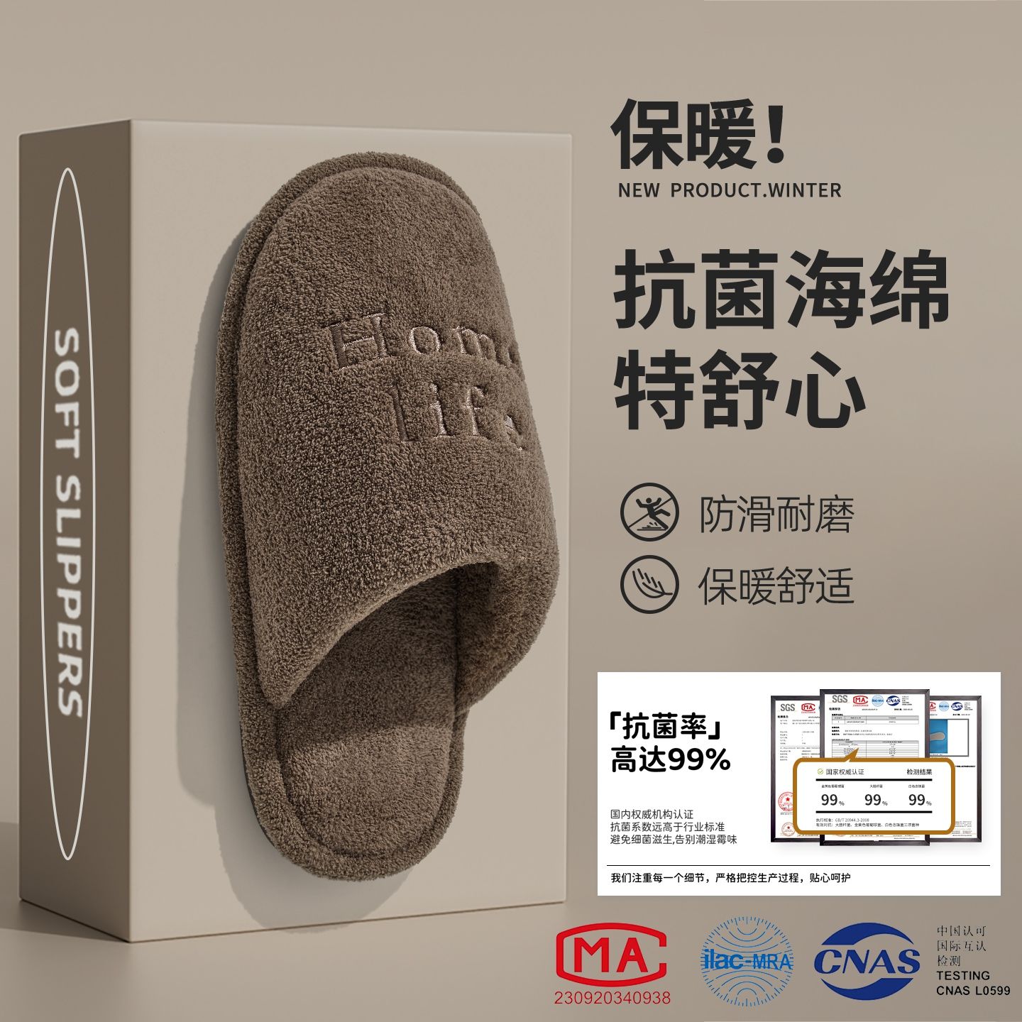 室内家居柔软抗菌防滑防臭保暖毛拖鞋 2025新款 冬 男士 洁丽雅棉拖鞋