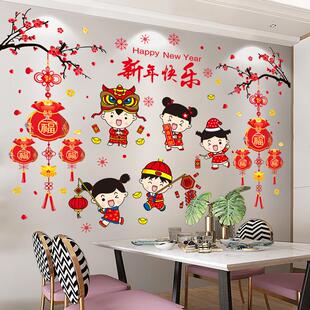 3D立体墙贴画年画客厅电视背景墙壁装 饰家用室内新年春节过年贴纸