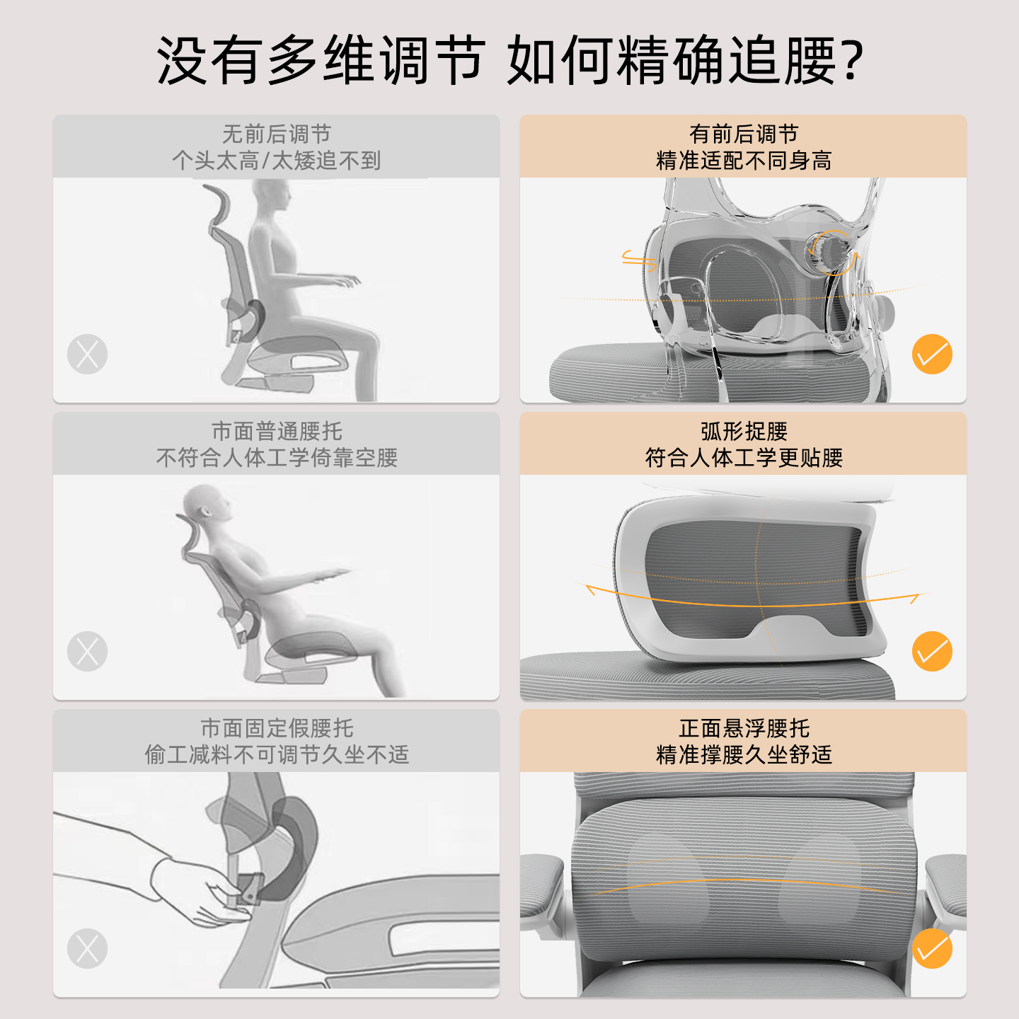 人体工学椅子护腰电脑椅家用舒适久坐办公椅午睡两用宿舍电竞座椅