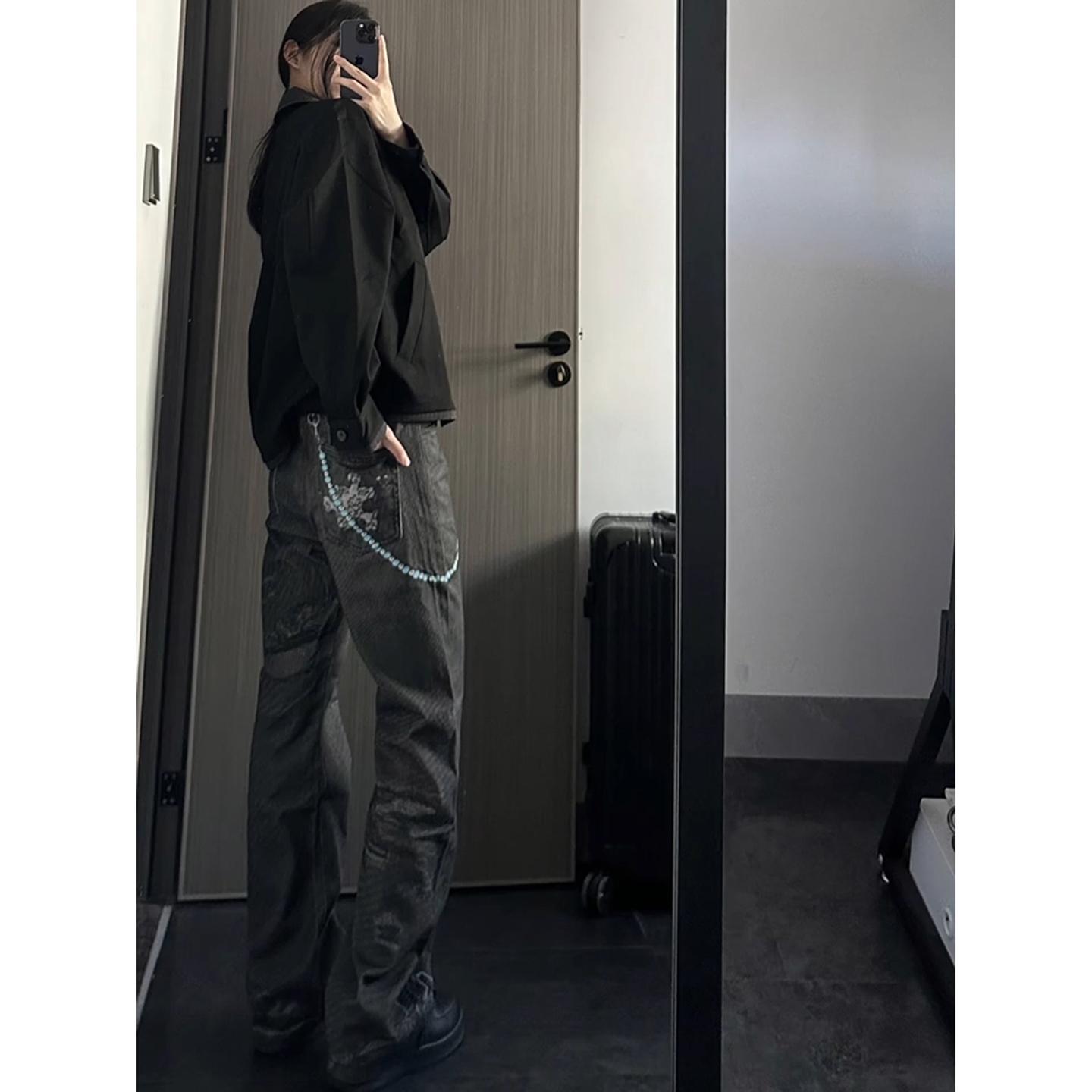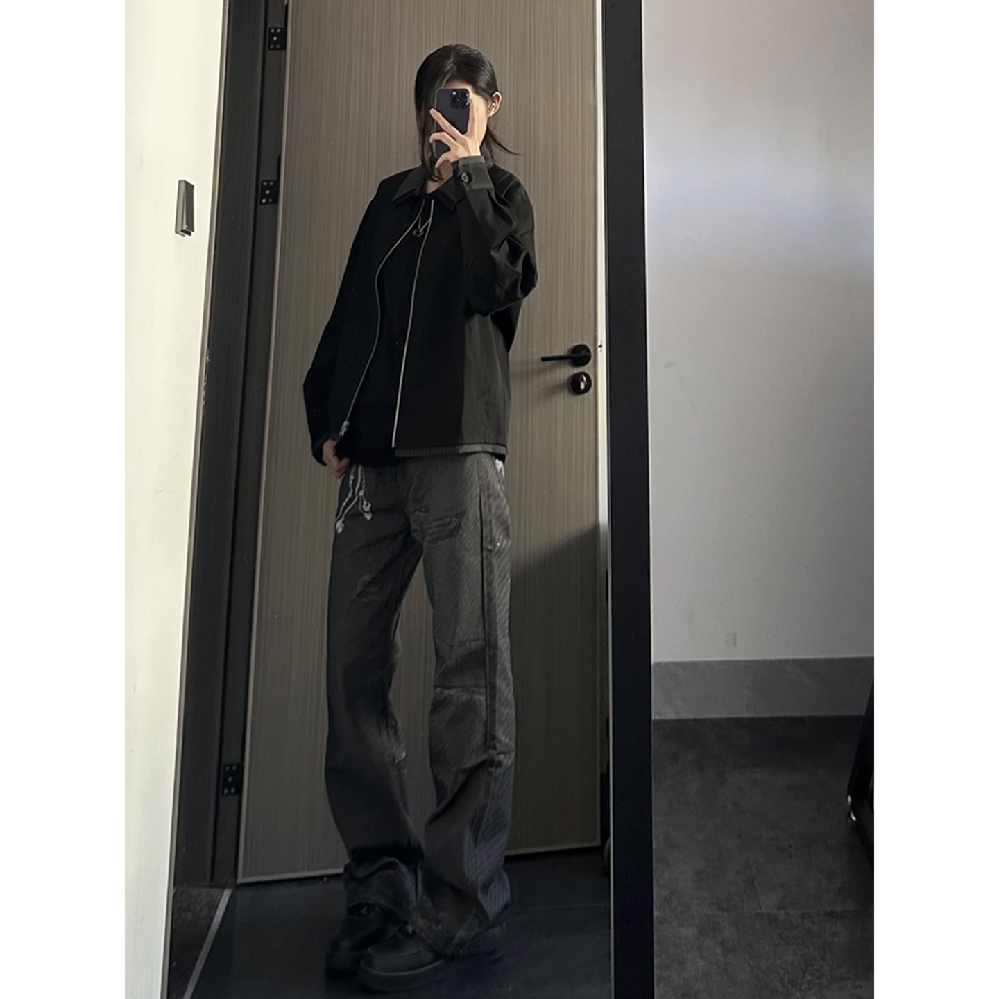 夹克上衣 潮牌美式 李一桐同款 INXXAPYD复古做旧牛仔外套男女同款