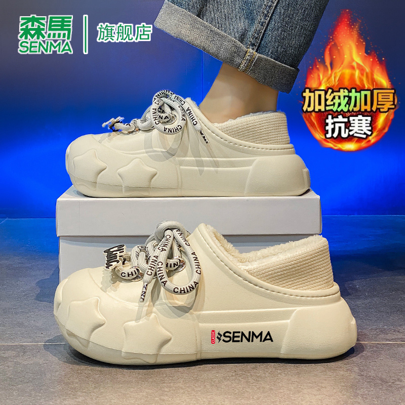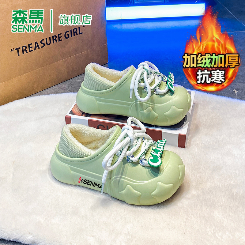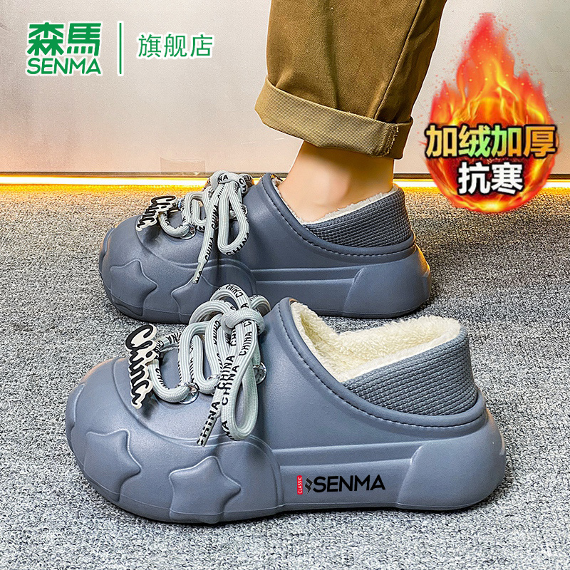 休闲棉拖鞋 包跟加绒加厚保暖情侣厚底外穿时尚 冬季 森马包头拖女款