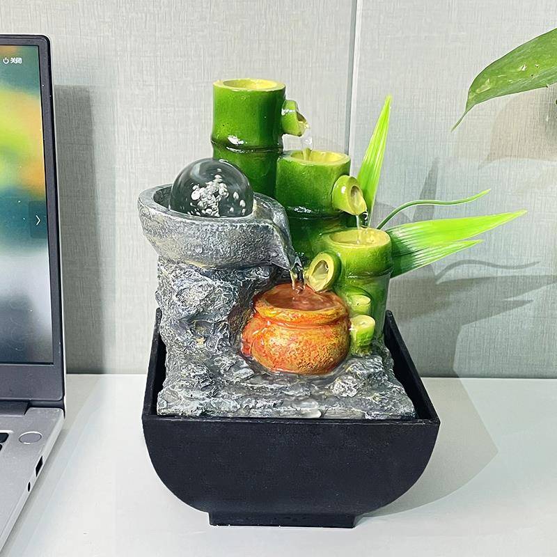小型流水喷泉客厅招财风水轮桌面循环水装 饰加湿器生财风水球摆件