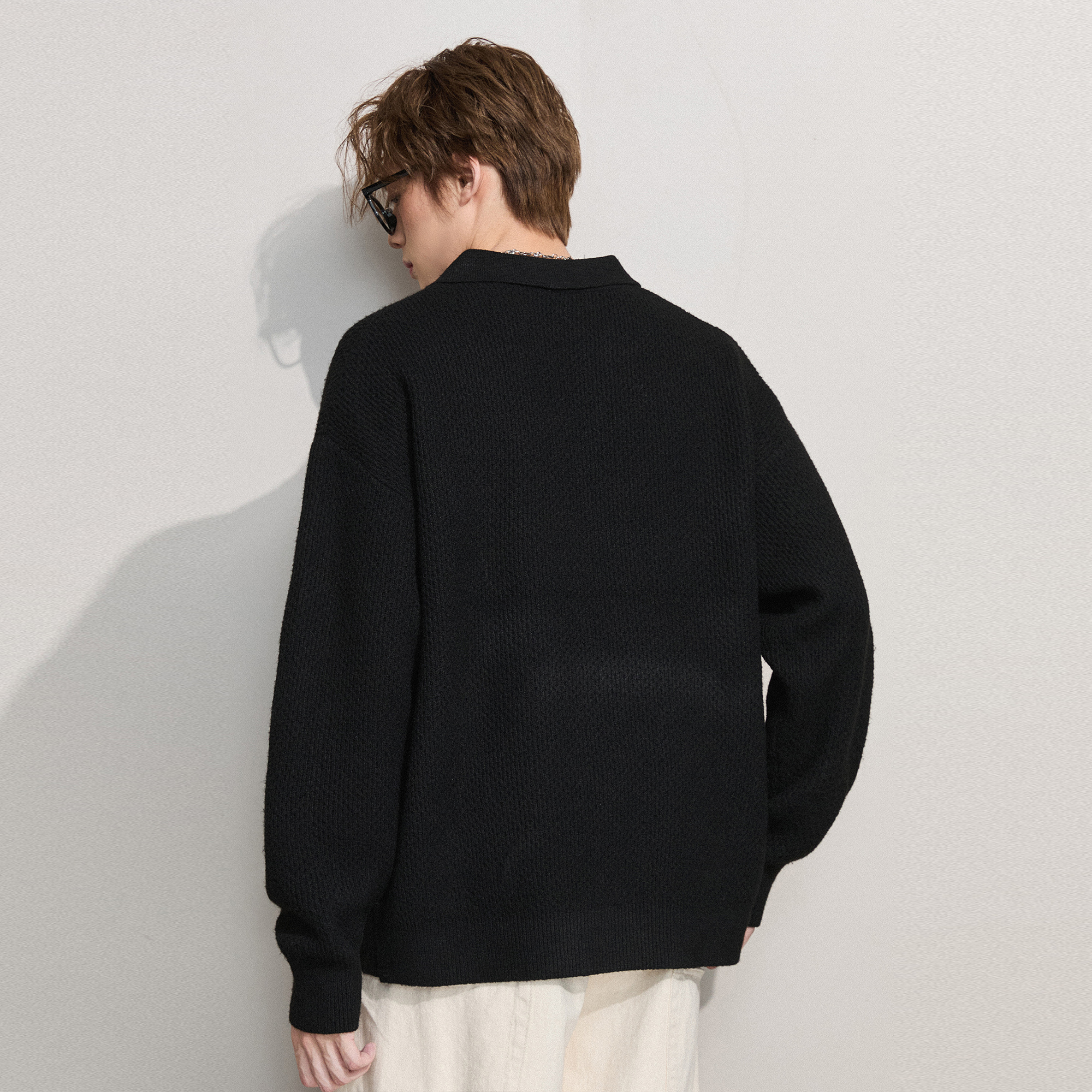 慵懒风纽扣针织开衫 V37潮牌复古黑灰色慵懒风毛衣外套男秋季 美式