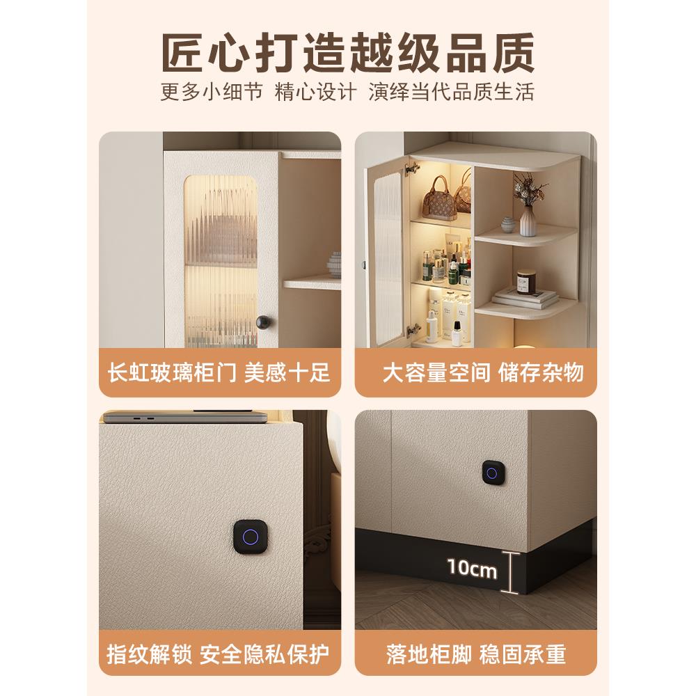现代简约床头柜书架一体置物架小户型卧室床边书柜奶油风床头高柜