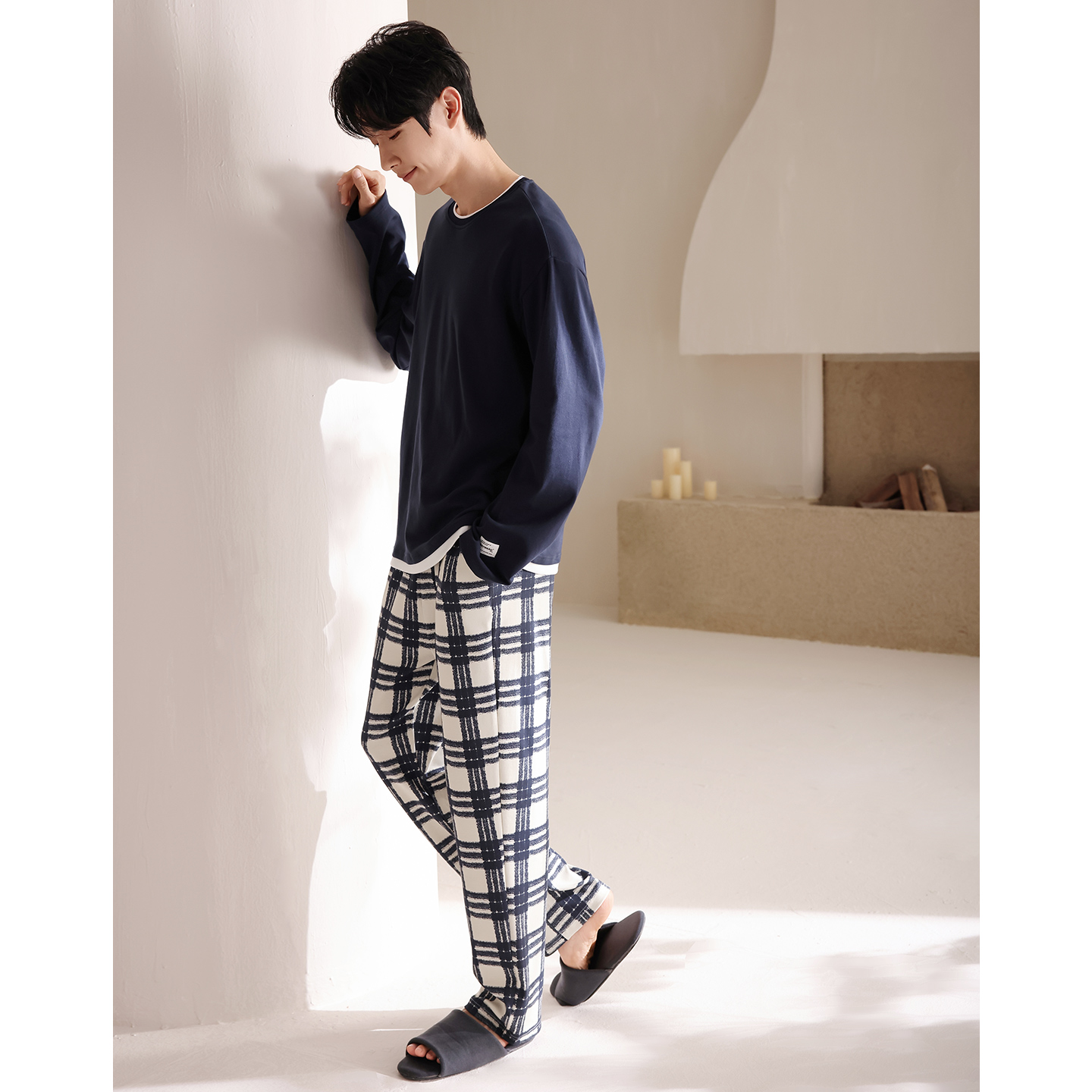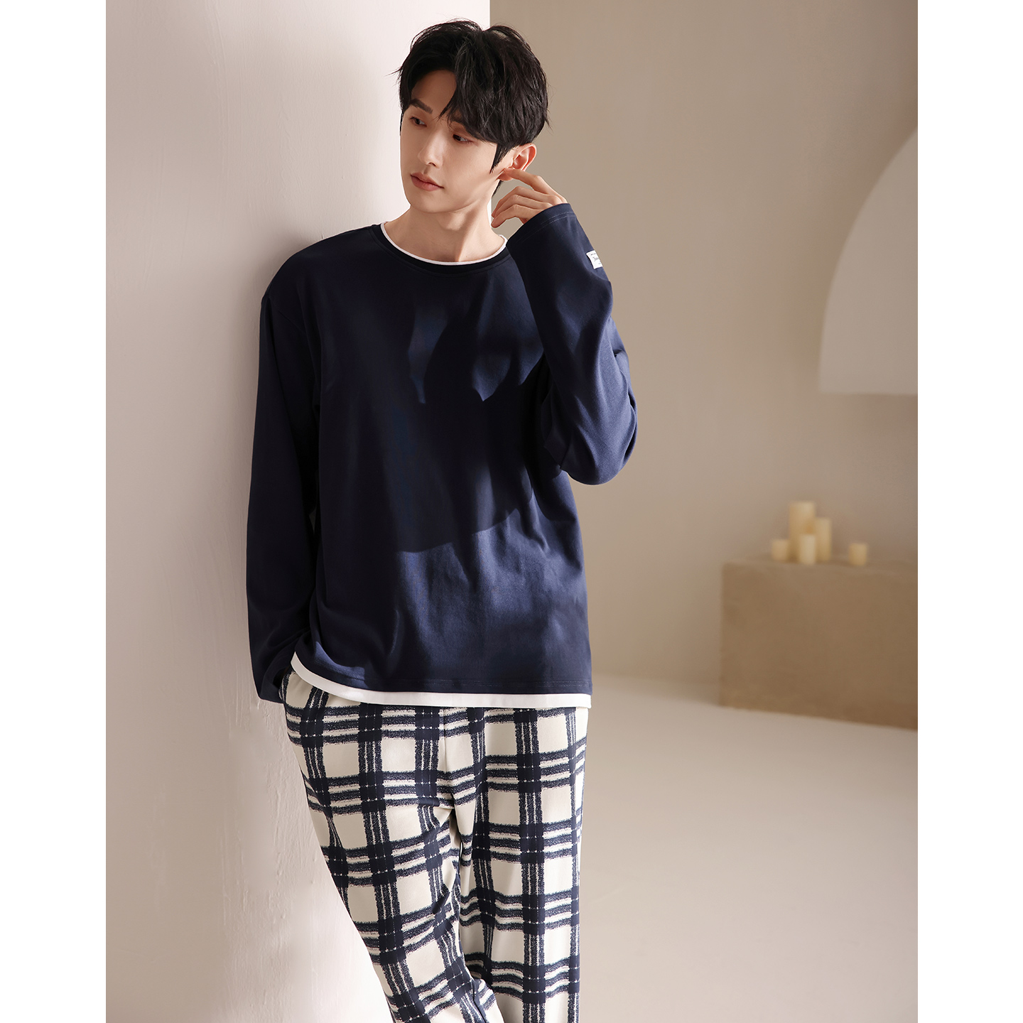 男士 套装 睡衣春秋季 套头青少年大码 高级感家居服 纯棉长袖 2025新款