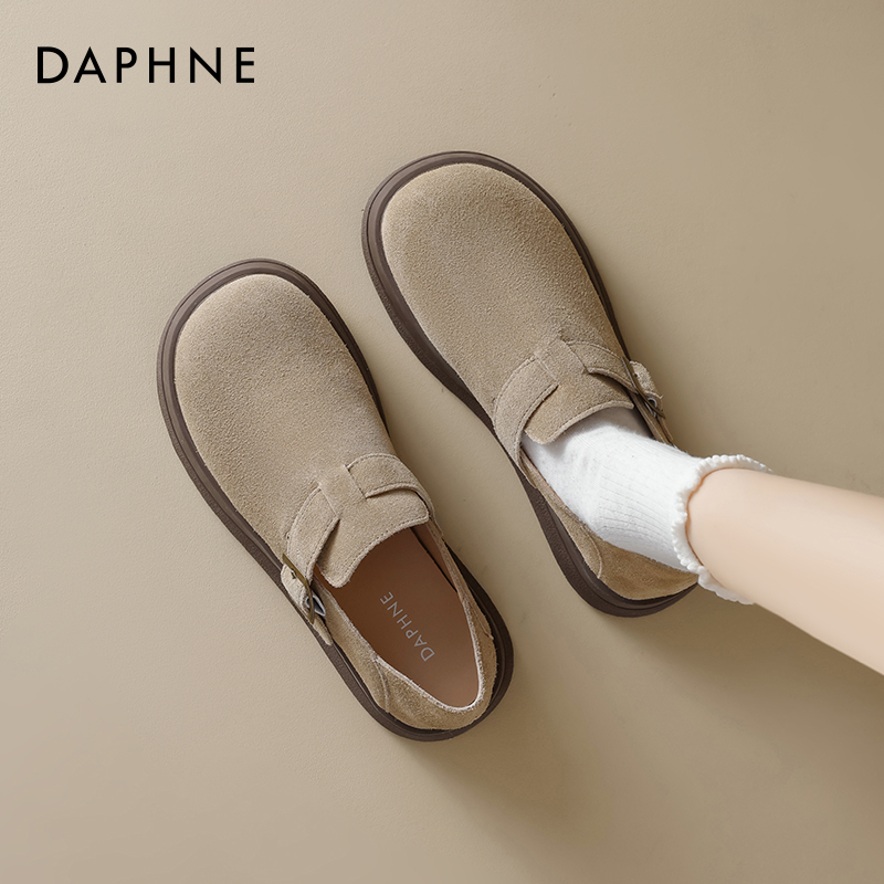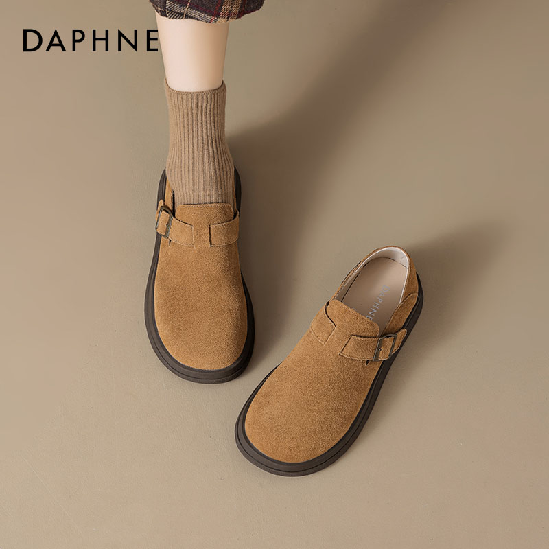 一脚蹬单鞋 达芙妮厚底勃肯鞋 加绒增高女鞋 秋2025新款 真皮全包女款