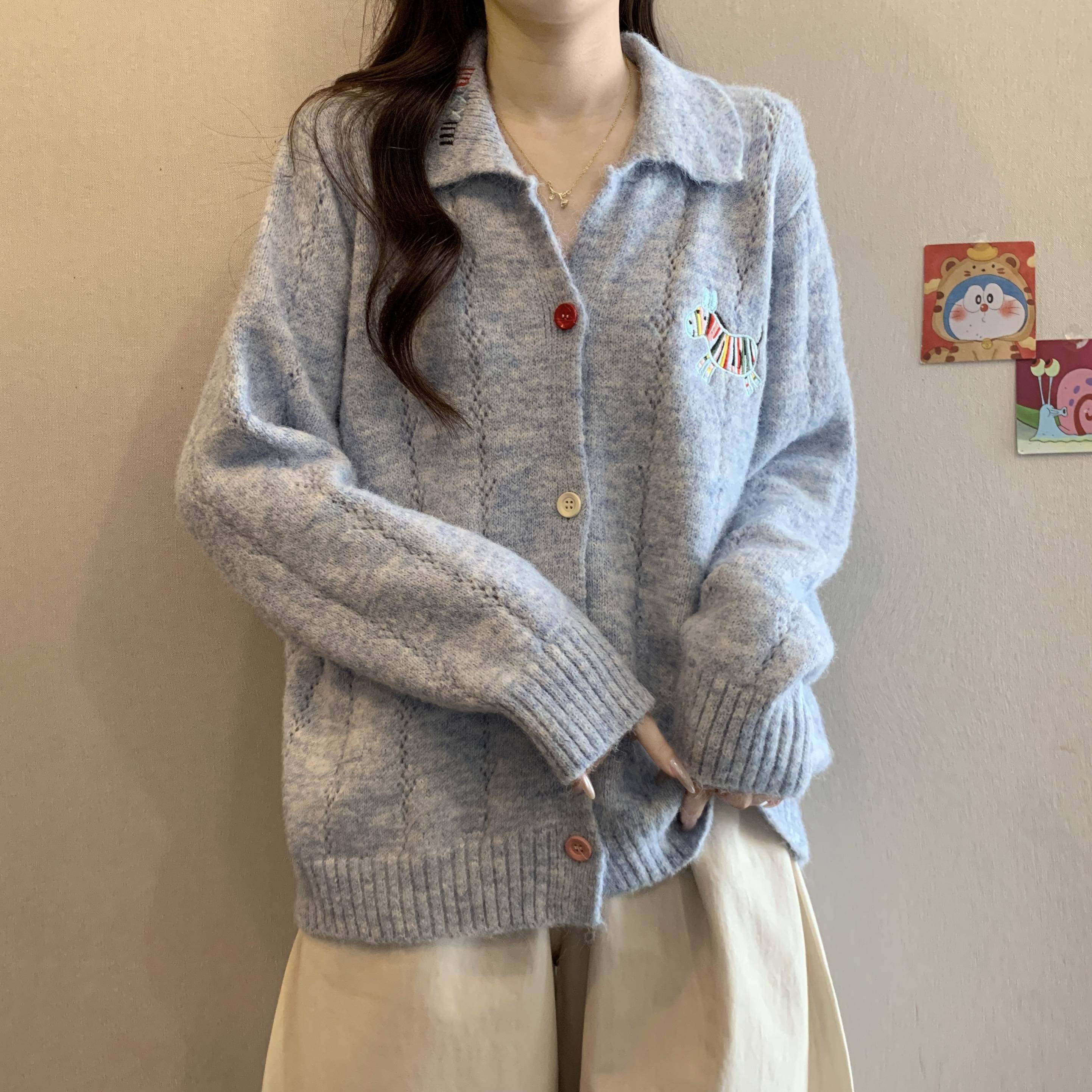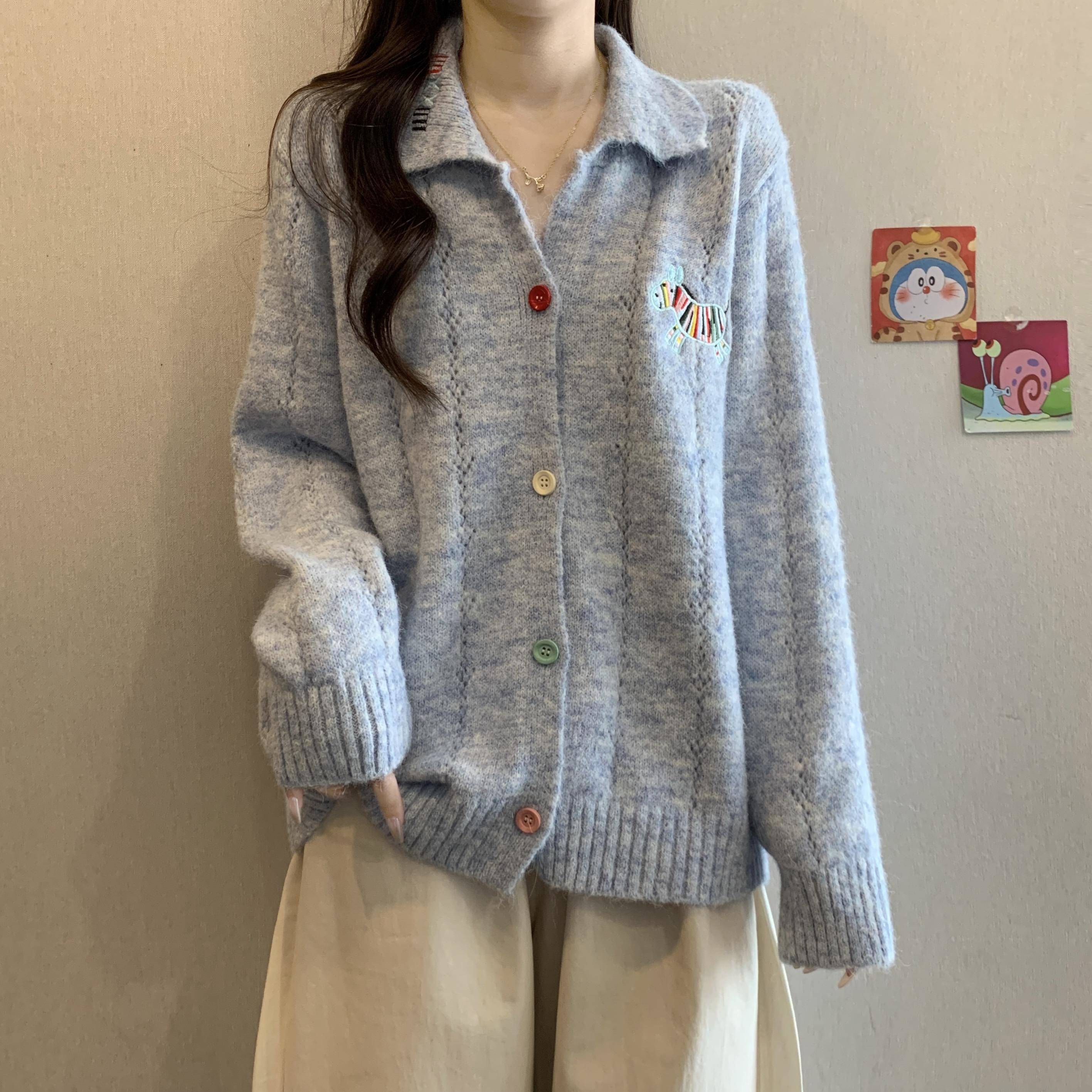 胖mm显瘦宽松慵懒风毛1014c 遮肚子减龄正肩翻领针织开衫 冬季 大码