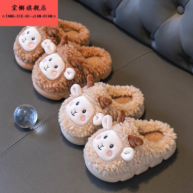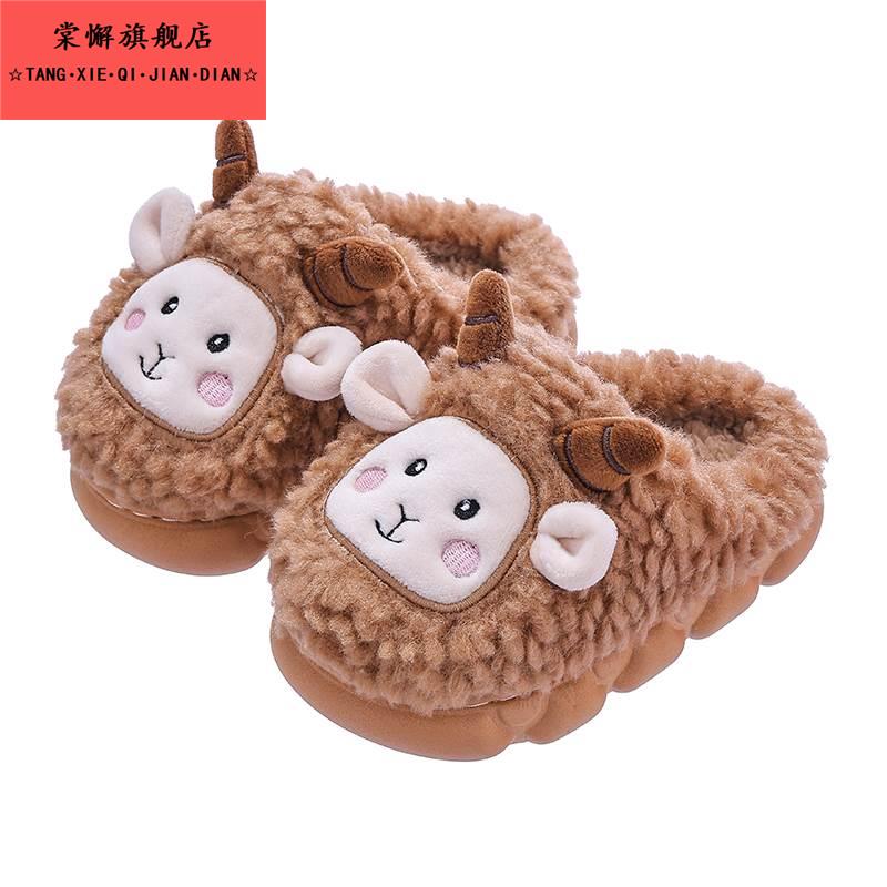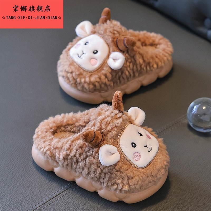 男童棉鞋 女童可爱绵羊室内毛绒婴儿宝宝家居鞋 2025冬季 儿童棉拖鞋