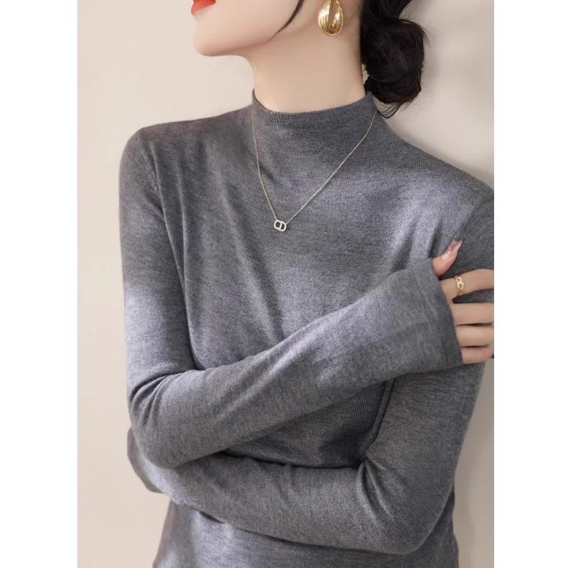 打底衫 毛衣女冬新款 灰色气质轻奢不起1011r 半高领针织衫 秋冬法式