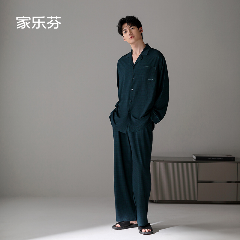 春秋款 套装 纯棉长袖 休闲开衫 高级感 家居服秋天大码 家乐芬睡衣男士