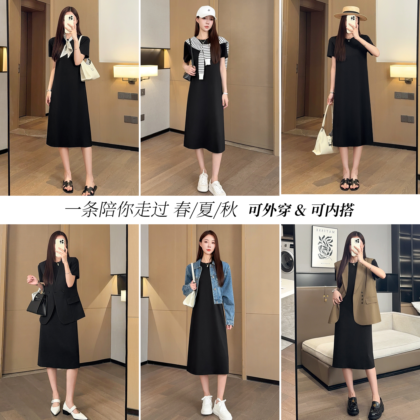 T恤裙 宽松气质直筒中长裙打底黑色短袖 早秋季 连衣裙女夏2025新款