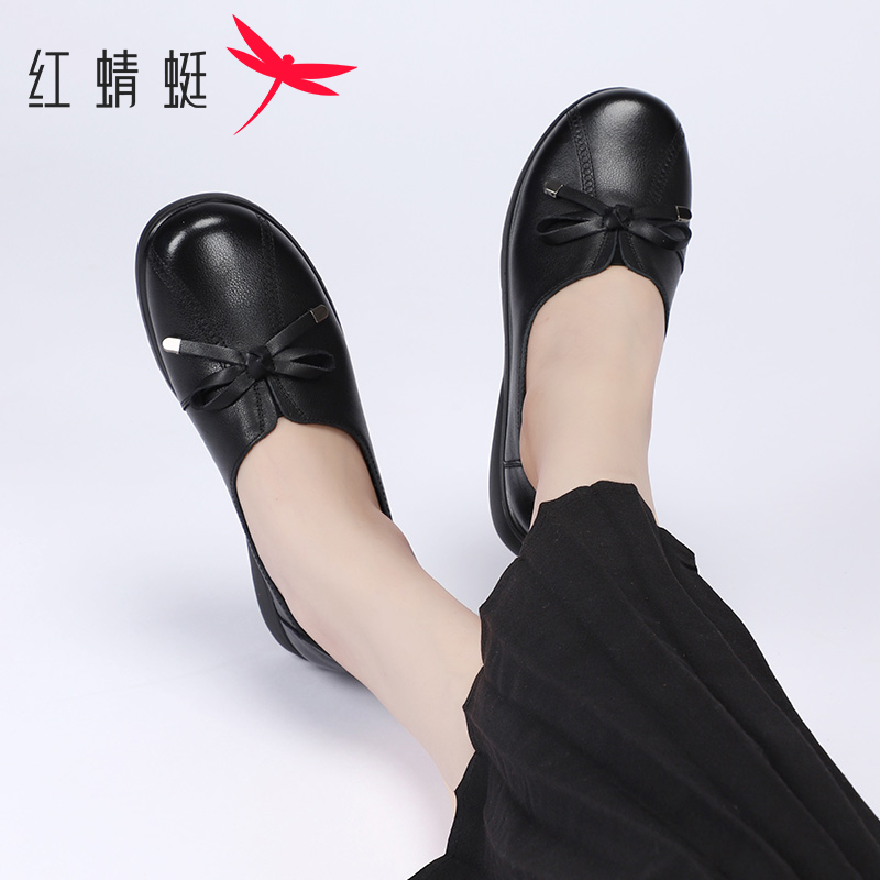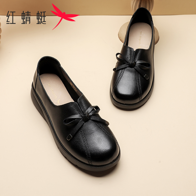 秋季 简约一脚蹬软底耐磨单鞋 新款 气质优雅妈妈鞋 女单鞋 红蜻蜓女鞋