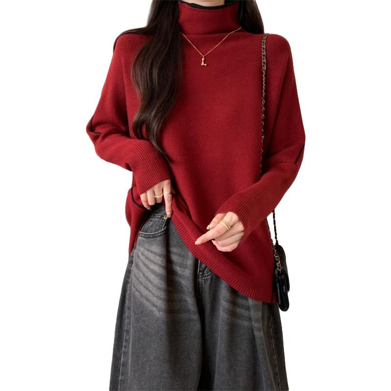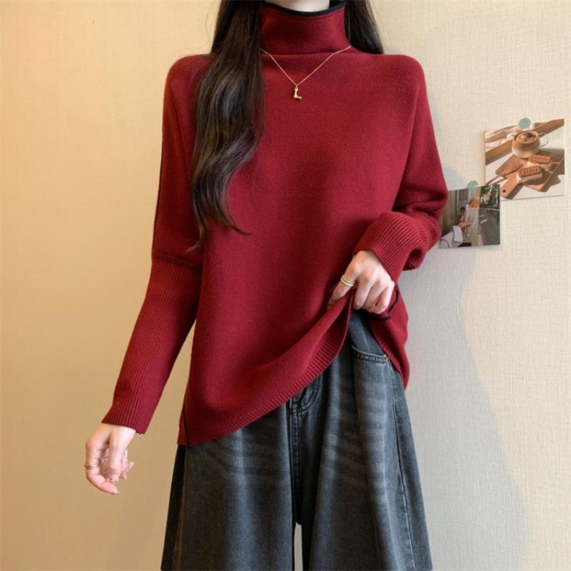 1014e 针织打底衫 秋冬安可拉红高领毛衣女2025大码 胖mm内搭长袖