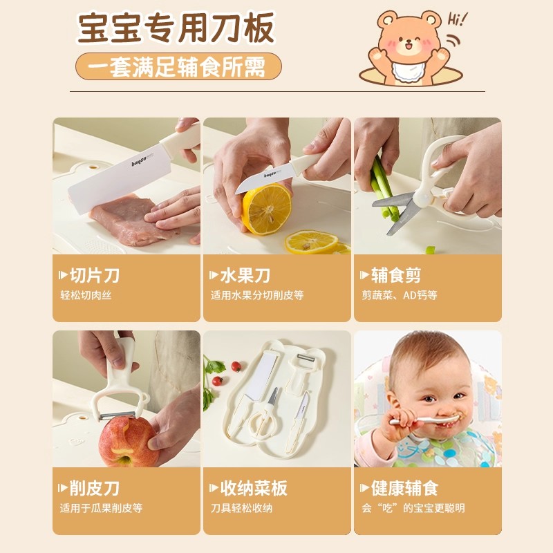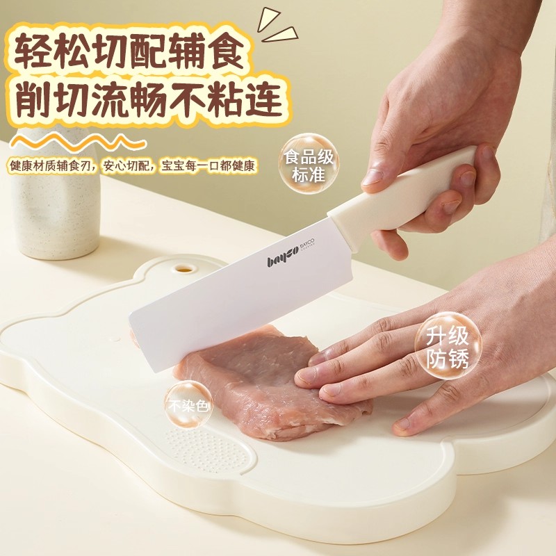 拜格婴儿辅食菜板刀具套装 宝宝专用菜刀砧案板二合一儿童工具全套