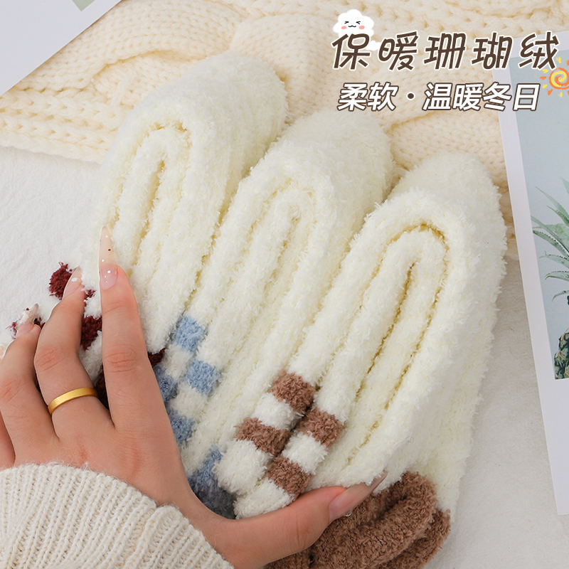 珊瑚袜女冬季 珊瑚绒长筒袜子加厚加绒月子袜保暖睡眠地板高筒长袜