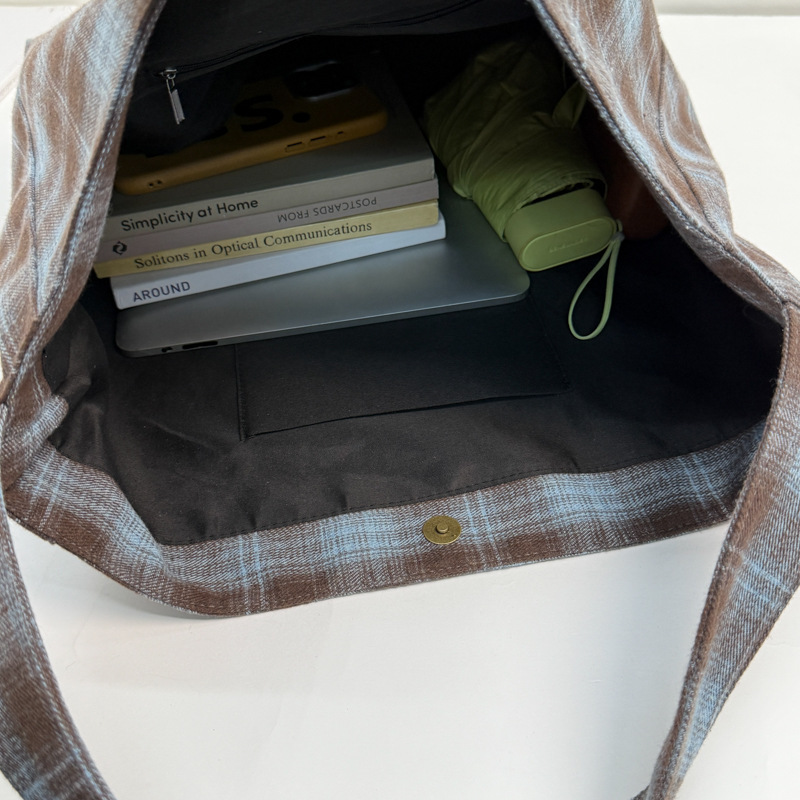 纹托特包女休闲轻便通勤百搭大容量斜挎包 英伦风格 复古法式 新款