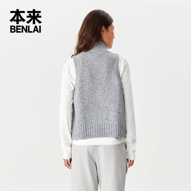 本来BENLAI女士拉链立领修身 BNT950007 叠穿针织马甲外套25秋新款