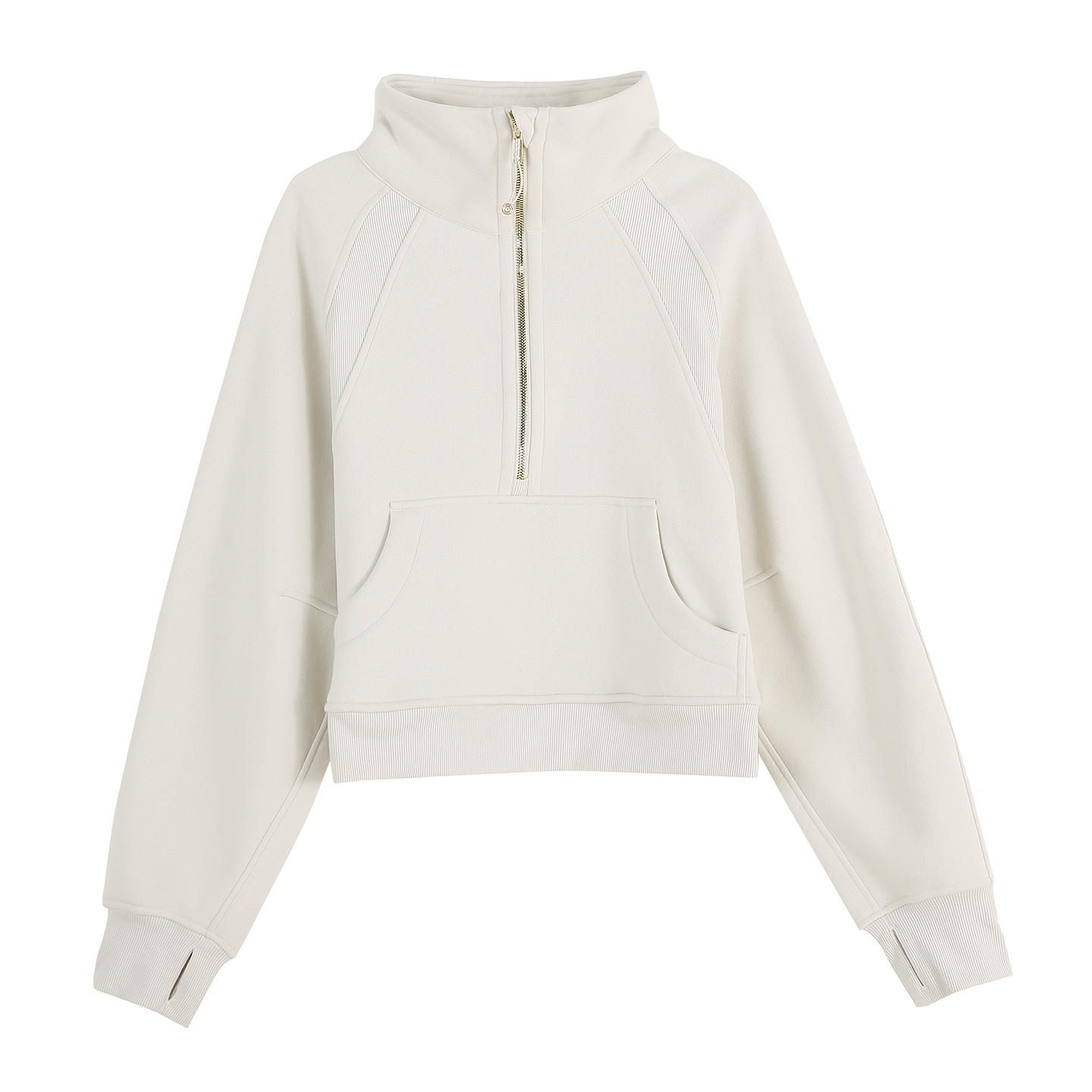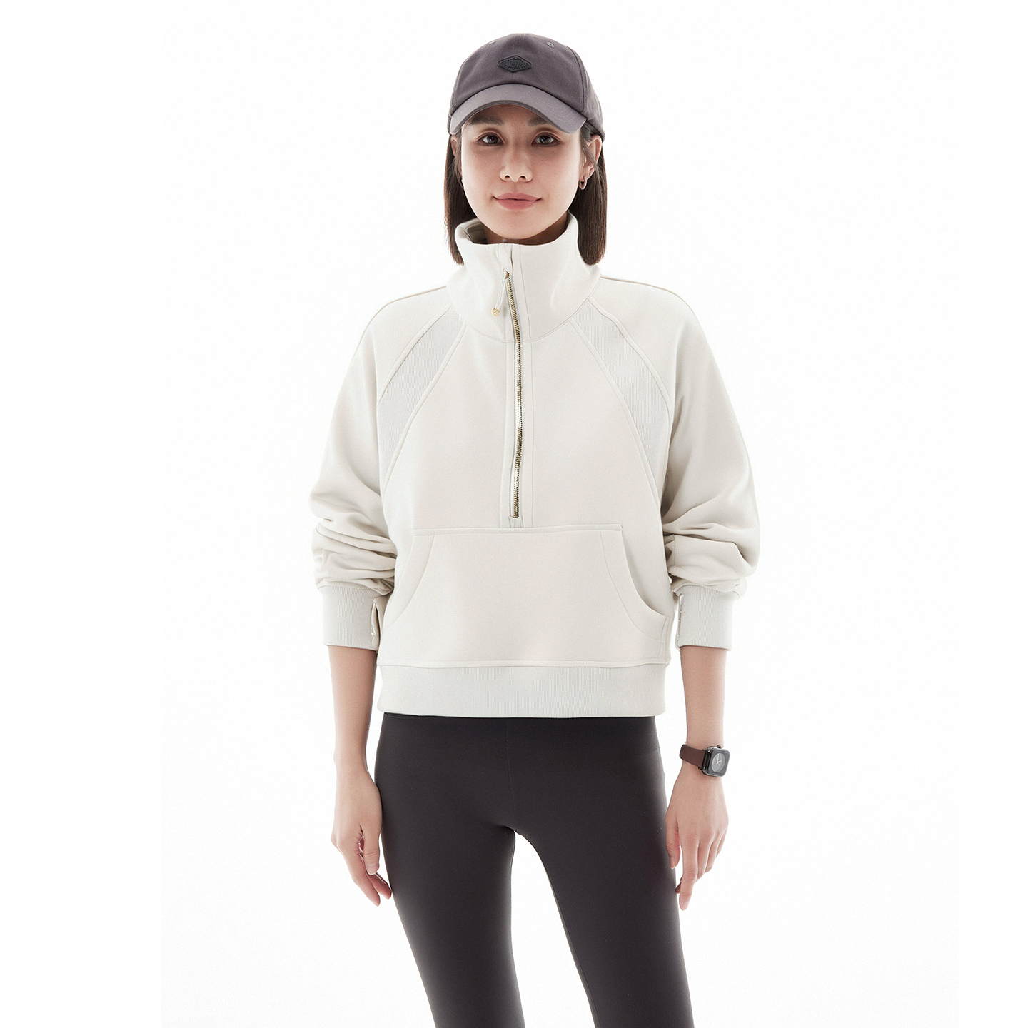 拉绒连帽卫衣2025冬季 半拉链插肩袖 上衣女 暖灰卫衣 CLOUDSPACE